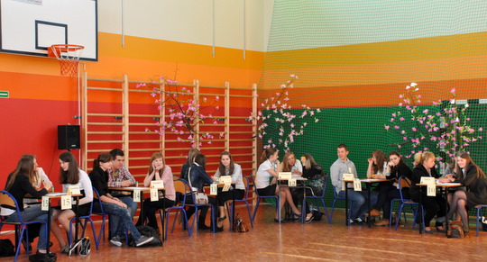 W czasie przerwy wszyscy posilali się bułkami i pączkami przygotowanymi przez panie z Rady Rodziców, niecierpliwie czekając na drugą część konkursu. Były to prezentacje artystyczne.