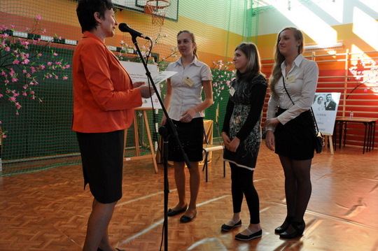 Prezes Lokalnej Grupy Działania „Równiny wołomińskiej” główny sponsor nagród pan Rafał Rozpara i pani Anna Gołoś kierownik Biblioteki Gminnej. Pani Ania od wielu lat współpracuje z nami przy różnych szkolnych wydarzeniach. Dziś ufundowała pamiątkowe książki Małgorzaty Gutowskiej Adamczyk dla wszystkich szkół.