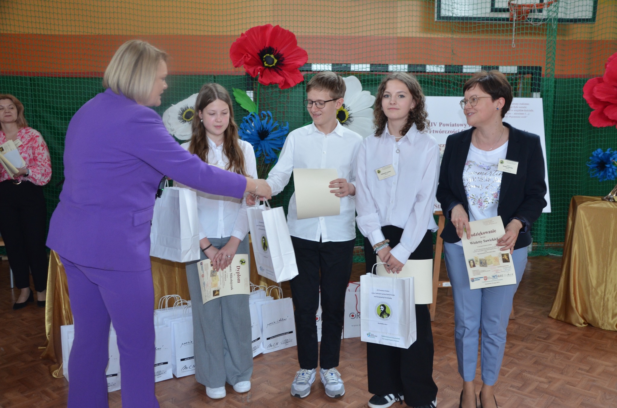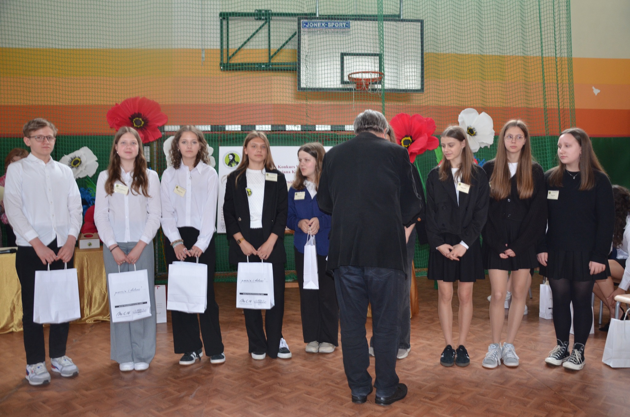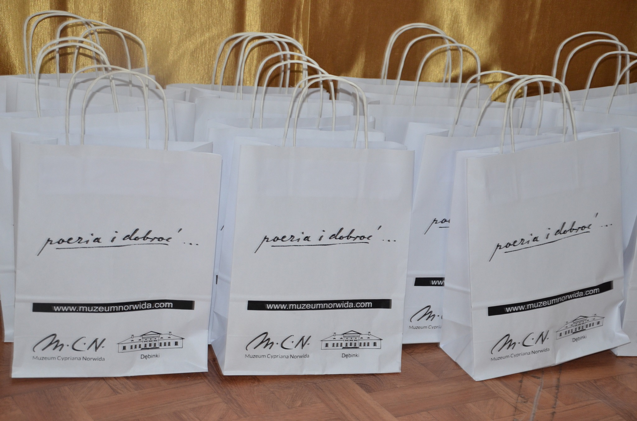 Uczennice prezentujące wiersze Cypriana Norwida otrzymały bony do Empiku, które zostały ufundowane przez naszą szkołę oraz książki, długopisy, notesy od dyrektora ORE p. Andrzeja Suchenka. Pozostali uczestnicy otrzymali dyplomy za udział, a dyrektor Muzeum Cypriana Norwida pan Jacenty Matysiak obdarował wszystkich uczestników konkursu pięknymi kubeczkami z logo Muzeum. Szkoła zwycięskiej drużyny otrzymała piękną statuetkę.