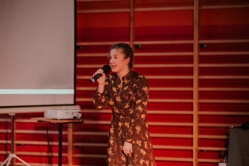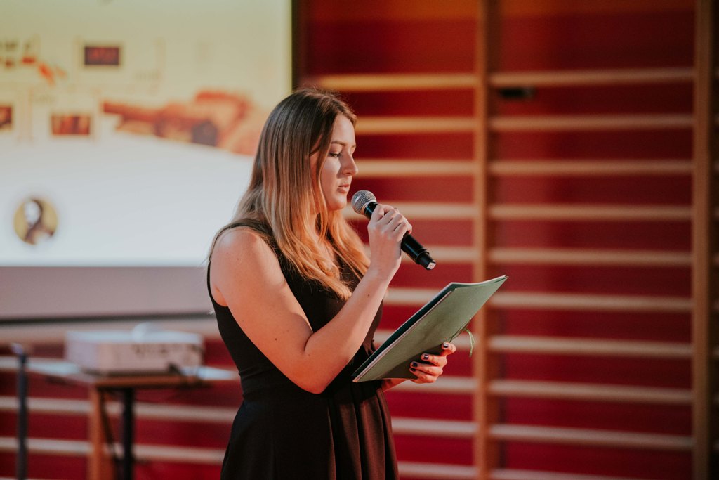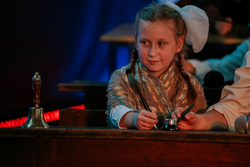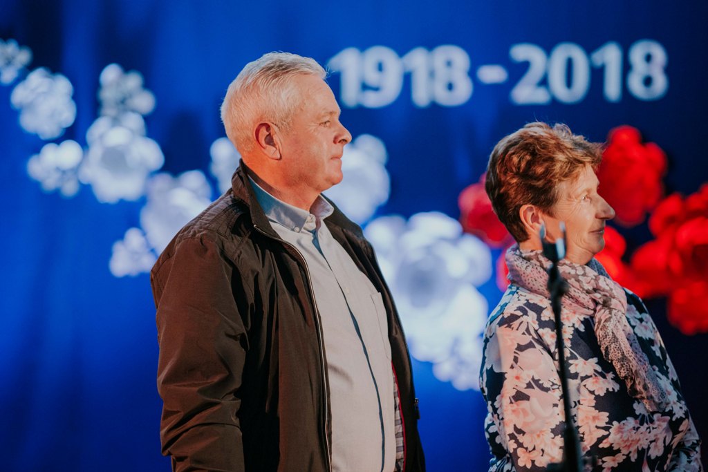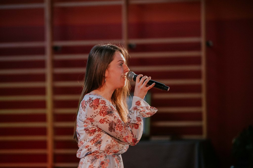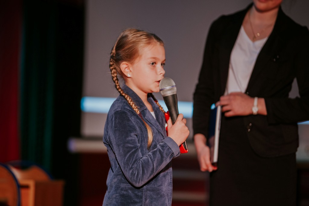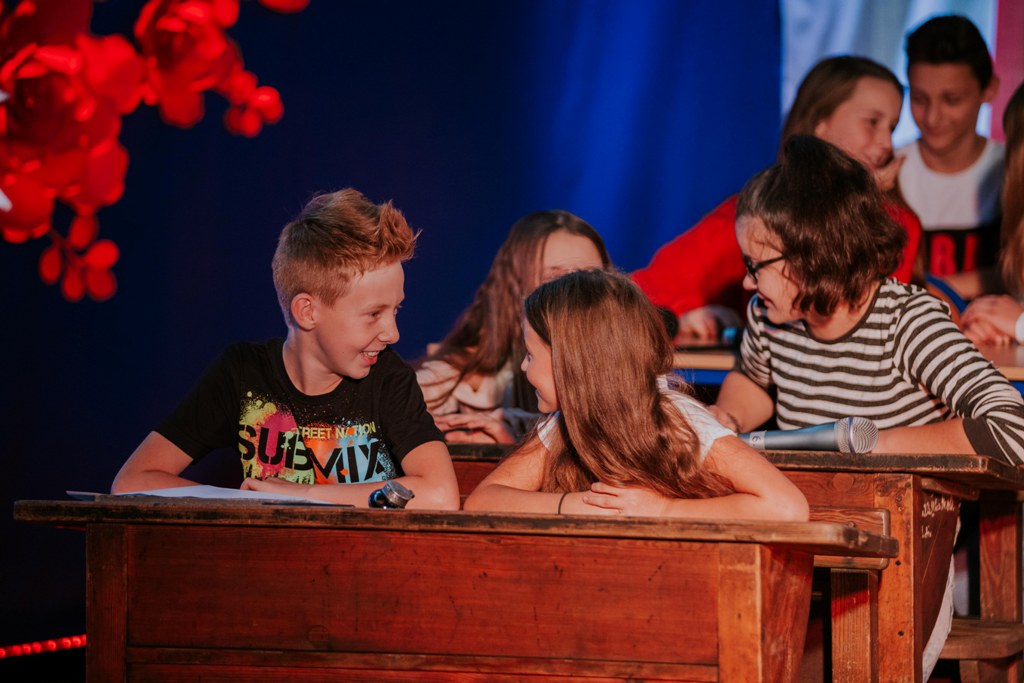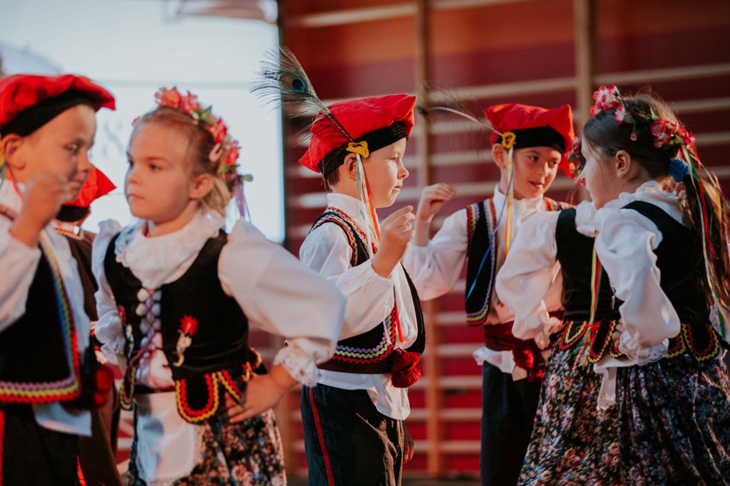 Kolejnym punktem uroczystości była prezentacja dziejów szkoły zrobiona na różne sposoby. Alicja Bujalska piosenką „Gdzie dziewczęta z tamtych lat” wyczarowała klimat przedwojennej Polski. Na prezentacji zgromadzeni zobaczyli karty z kroniki, zdjęcia, a dzieci w pierwszej scence teatralnej pokazały naukę kaligrafii. Konferansjerzy prowadzili nas przez kolejne okresy stuletniej historii szkoły. Nie zabrakło filmów z wywiadami, zakazanych piosenek, krakowiaka w wykonania pierwszaków, lekcji biologii i wierszy Cypriana Norwida, wzruszających piosenek „Twarze, twarze”, czy „Lubię wracać tam, gdzie byłem już” śpiewanych przez Ewelinę Cudną naszą absolwentkę. Końcowym akordem części artystycznej był przepiękny walc w wykonaniu uczniów z klasy VIII i III gimnazjum.