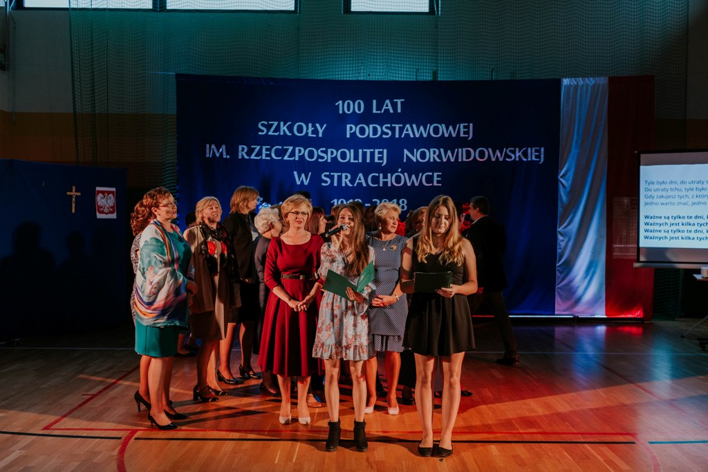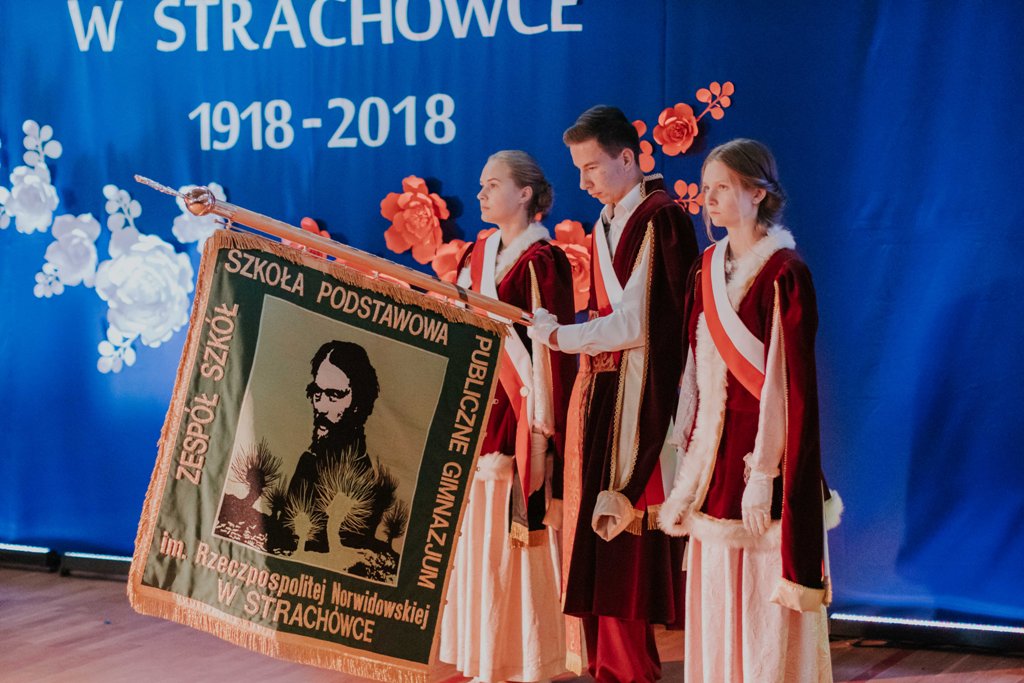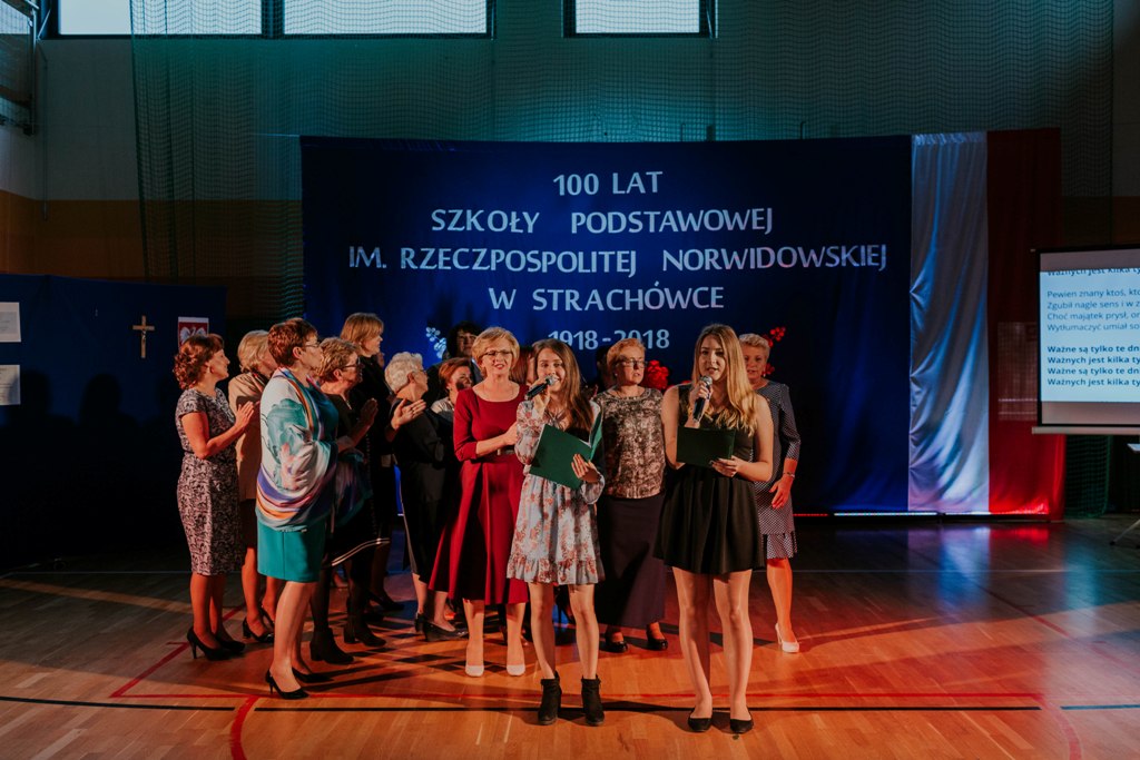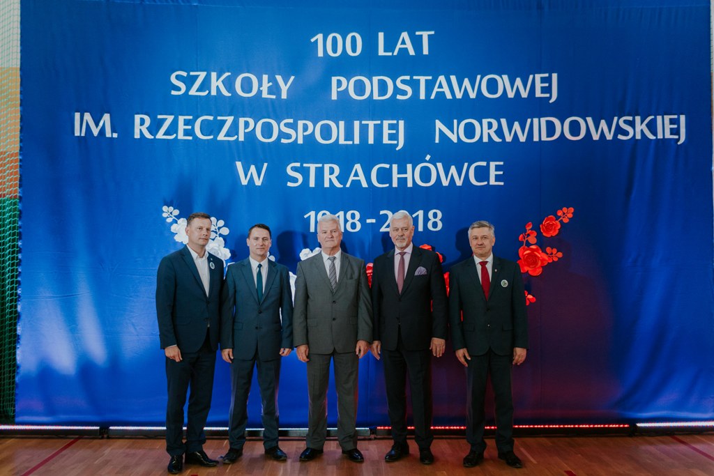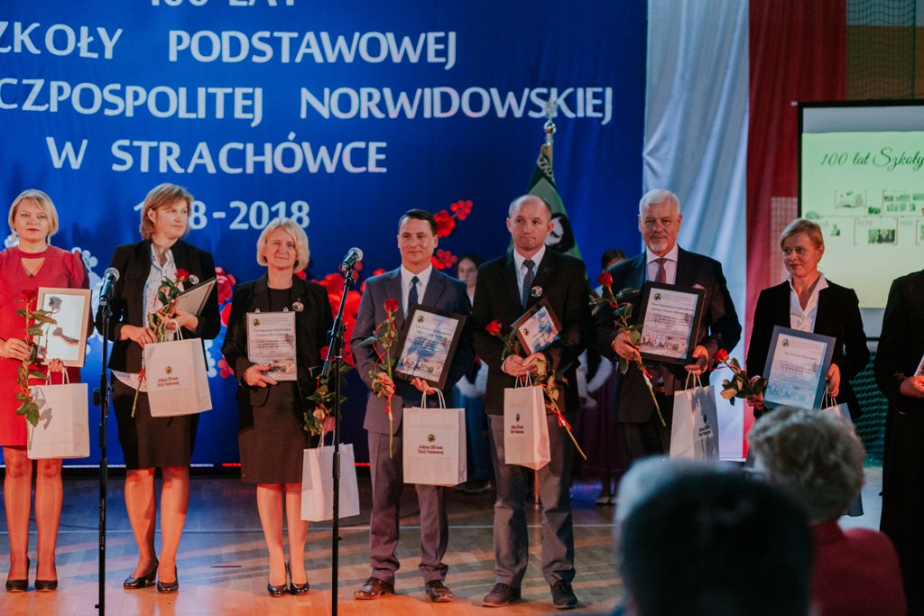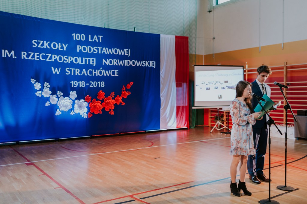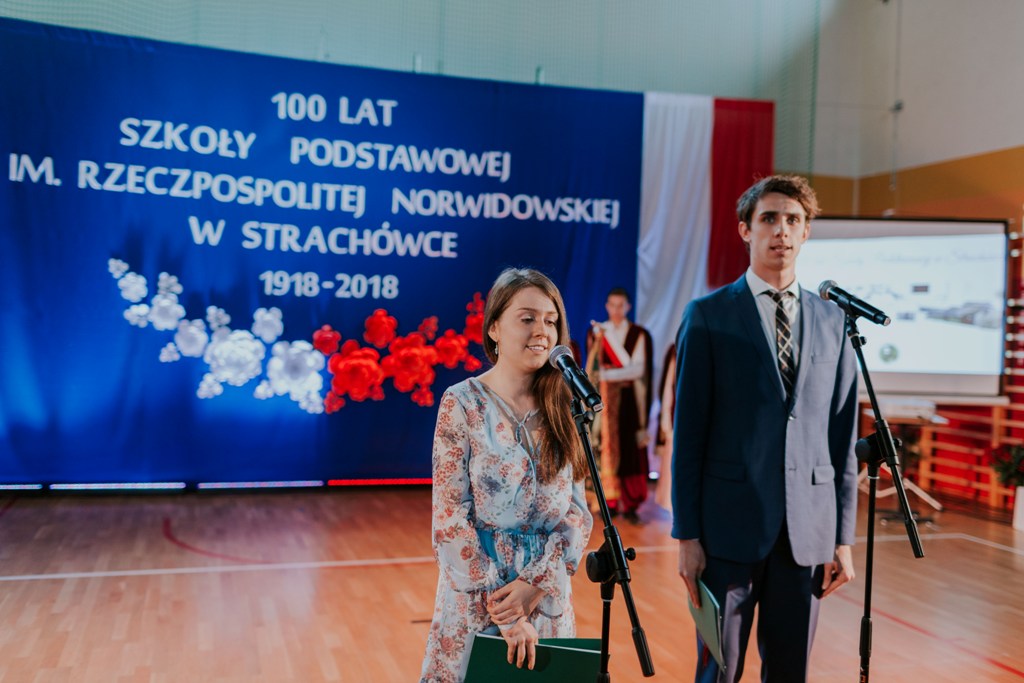 19 października 2018 r. na długo pozostanie w pamięci uczniów, rodziców, nauczycieli, pracowników naszej szkoły. W tym dniu świętowaliśmy Jubileusz 100-lecia Szkoły Podstawowej w Strachówce od 2008 r. noszącej imię Rzeczpospolitej Norwidowskiej. Uroczystość rozpoczęła się Mszą Świętą w kościele parafialnym p.w. Wniebowzięcia Najświętszej Maryi Panny w Strachówce. Eucharystię w intencji całej społeczności szkoły od 1918 r. koncelebrowali ks. proboszcz Mieczysław Jerzak i ks. Fabian Powała, który uczył w naszej szkole religii. W modlitwie wziął udział ks. dziekan Bogdan Lewiński.