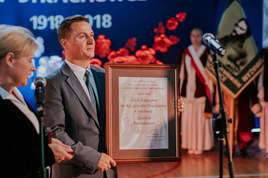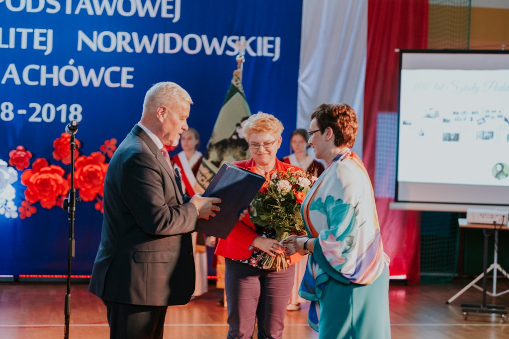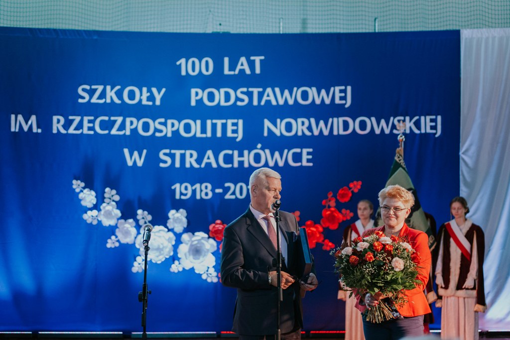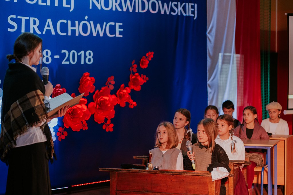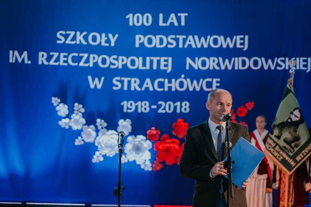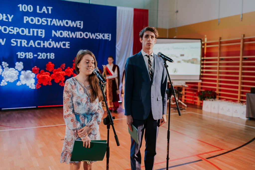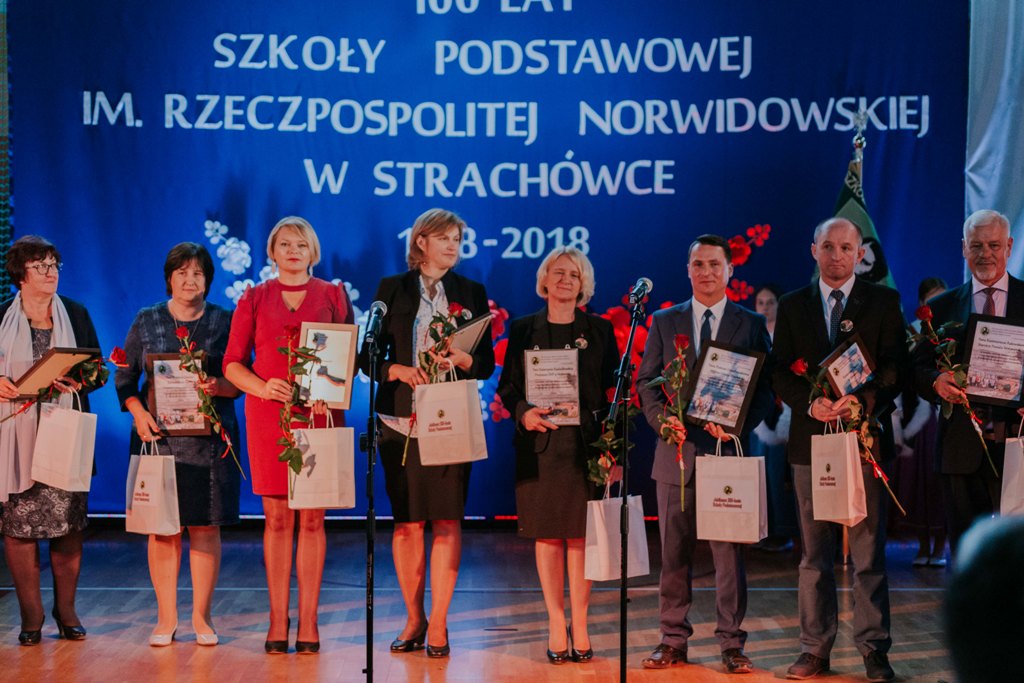 19 października 2018 r. na długo pozostanie w pamięci uczniów, rodziców, nauczycieli, pracowników naszej szkoły. W tym dniu świętowaliśmy Jubileusz 100-lecia Szkoły Podstawowej w Strachówce od 2008 r. noszącej imię Rzeczpospolitej Norwidowskiej. Uroczystość rozpoczęła się Mszą Świętą w kościele parafialnym p.w. Wniebowzięcia Najświętszej Maryi Panny w Strachówce. Eucharystię w intencji całej społeczności szkoły od 1918 r. koncelebrowali ks. proboszcz Mieczysław Jerzak i ks. Fabian Powała, który uczył w naszej szkole religii. W modlitwie wziął udział ks. dziekan Bogdan Lewiński.