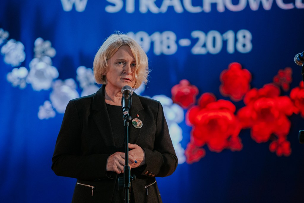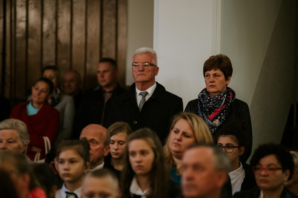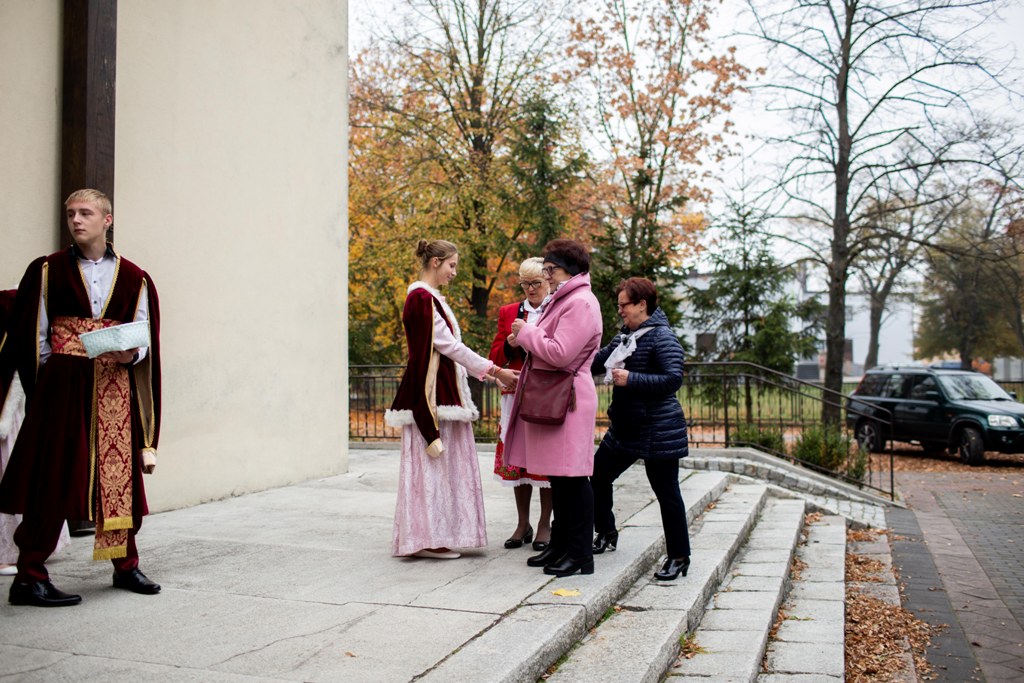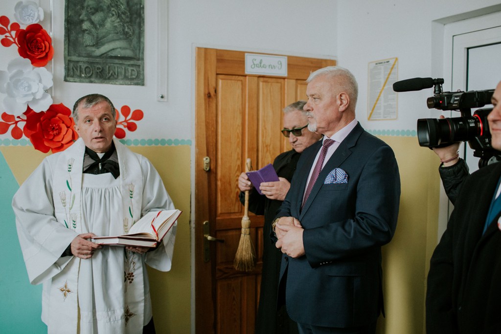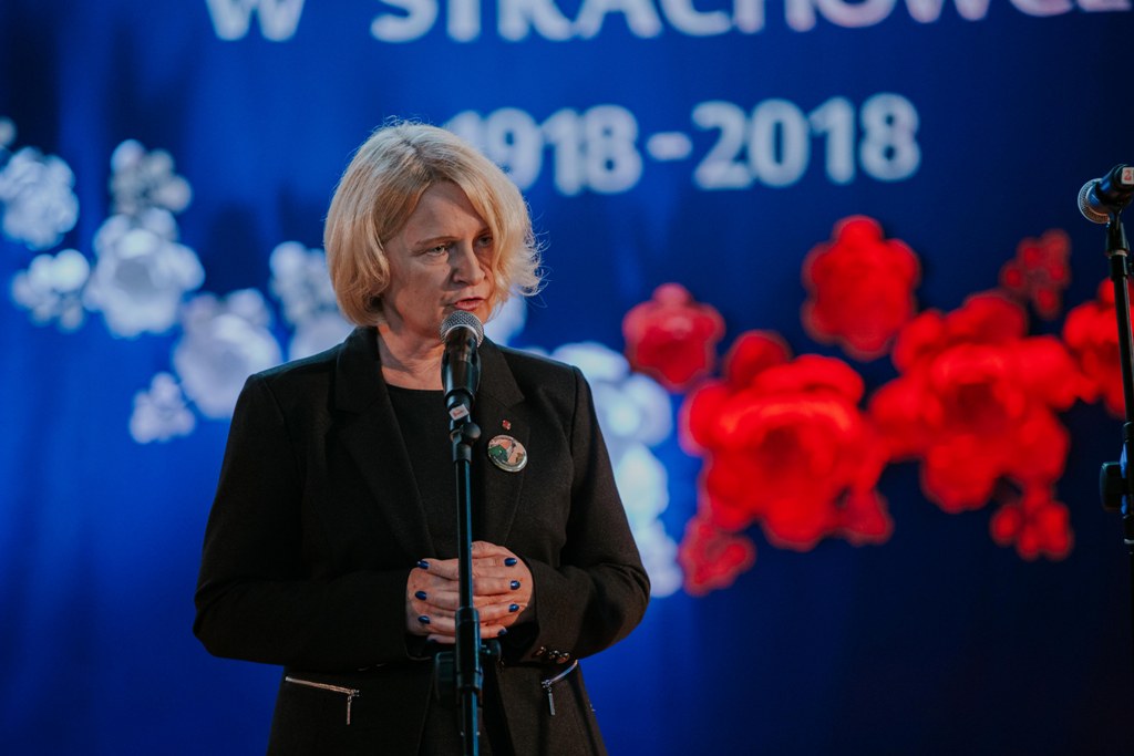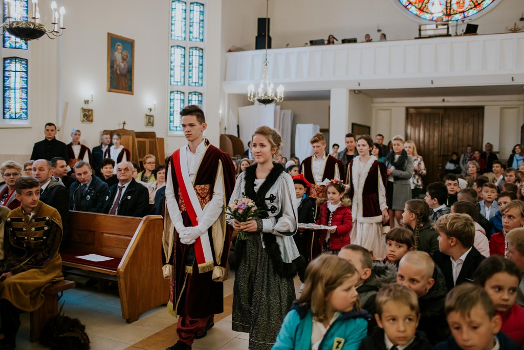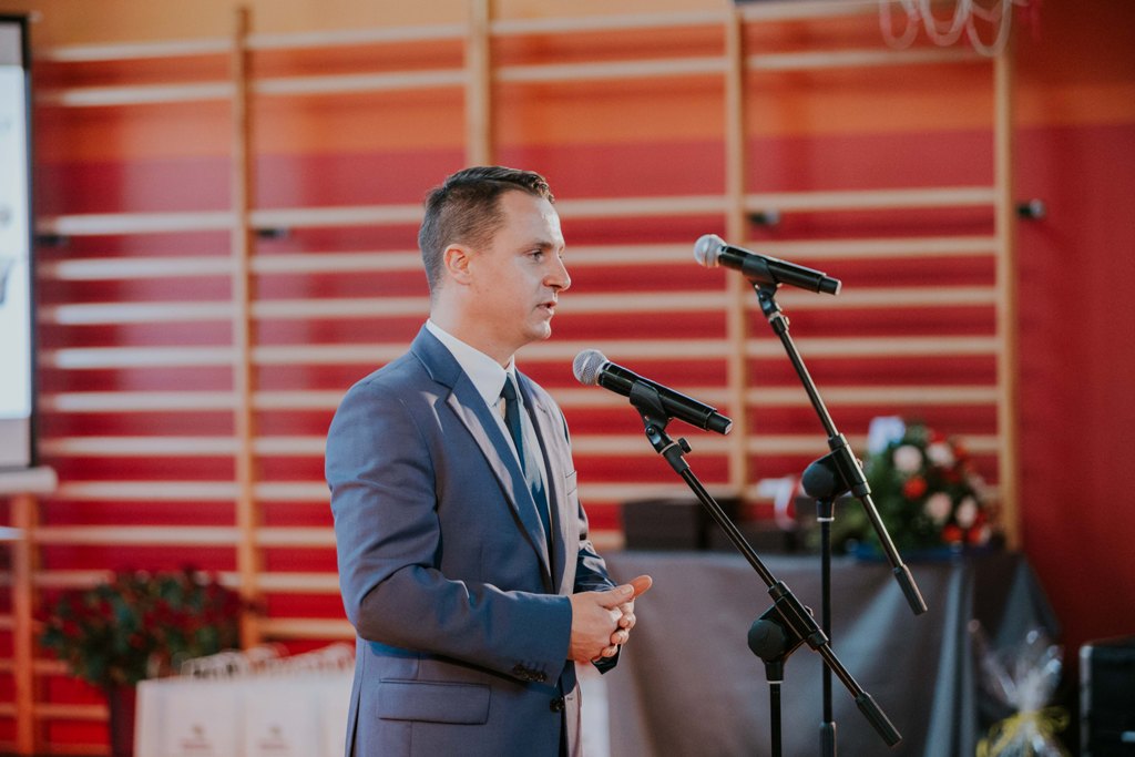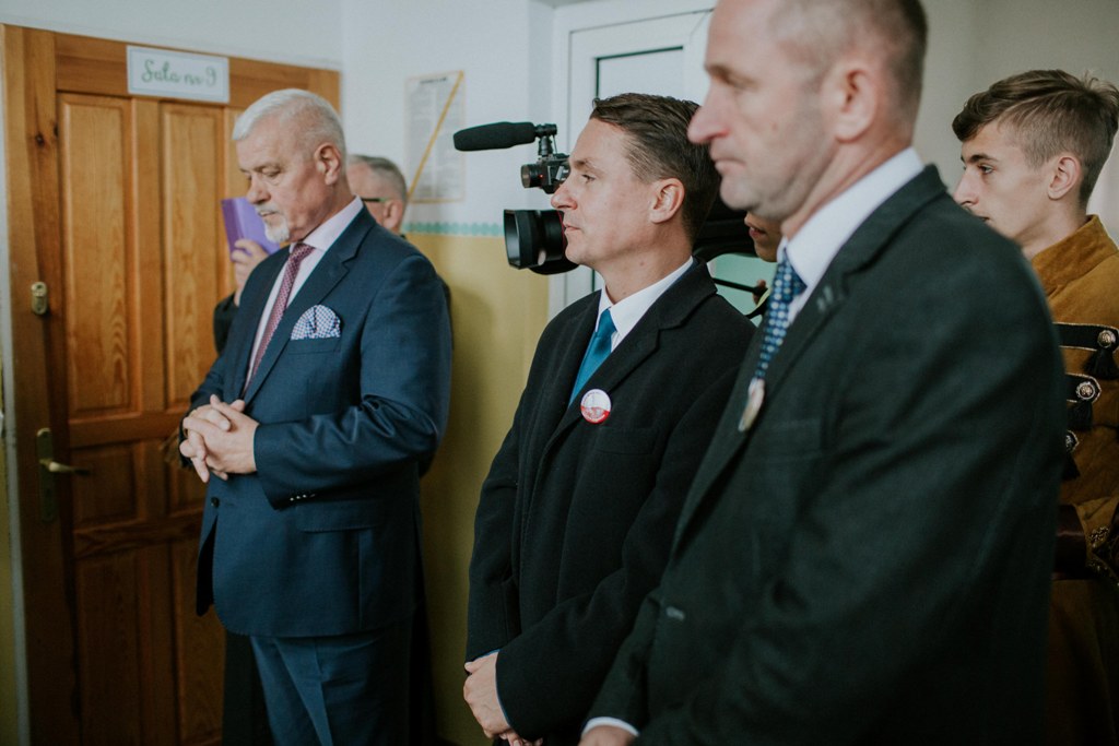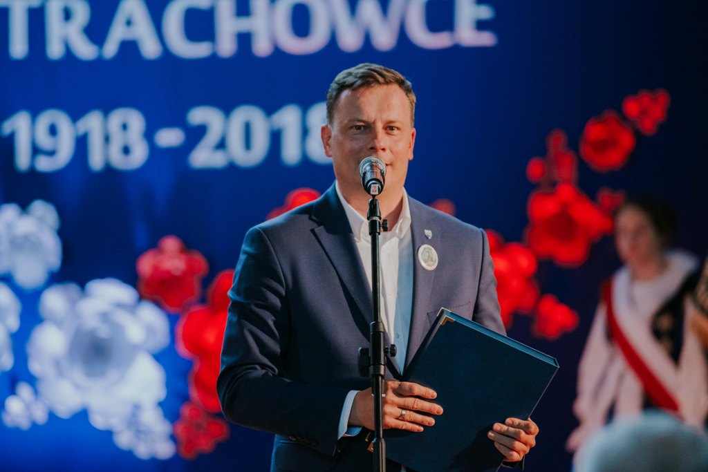 Młodzież klasy VIII szkoły podstawowej i III gimnazjum przywitała gości staropolskim polonezem, po czym uroczystość poprowadzili nasi absolwenci Alicja Bujalska i Łazarz Kapaon. Po krótkim wprowadzeniu oddali głos dyrektorowi szkoły pani Grażynie Kapaon. Pani Dyrektor ze wzruszeniem witała: najstarszego ucznia naszej szkoły Wacława Zbrzeźniaka, byłych dyrektorów i nauczycieli emerytów, przedstawiciela Marszałka Województwa Mazowieckiego Adama Struzika p. Bożenę Żelazowską, starostę powiatu wołomińskiego Kazimierza Rakowskiego, wójta Piotra Orzechowskiego, wójta gminy Jadów Dariusza Kokoszkę, burmistrza Tłuszcza Pawła Bednarczyka, Henrykę Michalczewską z wydziału promocji starostwa powiatu wołomińskiego, prezesa ZNP w Wołominie p. Katarzynę Kadzidłowską, przedstawiciela NSZZ „Solidarność” komisji w Łochowie Beatę Kotarbę, radną powiatową Magdalenę Suchenek, przewodniczącą rady gminy Annę Ołdak, Magdalenę Jurewicz przedstawicielkę Szkoły Edukacji Polsko - Amerykańskiej Fundacji Wolności i Uniwersytetu Warszawskiego, przedstawiciela komisariatu Policji w Jadowie, kierownika GOPS p. Krystynę Radzio, kierownika biblioteki gminnej Annę Gołoś, dyrektora SZOEASz p. Henryka Szczęsnego, księży, dyrektorów szkół, Koła Gospodyń Wiejskich z Jadwisina, Równego, Strachówki, druhów z OSP, rodziców i uczniów, mieszkańców gminy Strachówka. W pięknych słowach przemówienia nakreśliła ideały i wartości, które przyświecają naszej codziennej pracy, swoiste credo szkoły. Pani Dyrektor w swoim przemówieniu związała świętowanie szkoły, ze świętowaniem narodu i państwa w stulecie odzyskania niepodległości. Podkreśliła w ten sposób, że głębi uroczystościom dodaje dramatyczna historia ostatnich stu lat. Nazwała po imieniu zmienne losy wolności i niepodległości na naszej ziemi: II RP, II Wojnę Światową i hitleryzm, PRL i komunizm, Solidarność, stan wojenny i czas pełnej wolności od 29 lat. W tych wszystkich okolicznościach działała szkoła. Dzisiaj jest wśród liderów polskiej oświaty i szkolnictwa. Należy do elitarnych kilku procent, które podjęły świadomie pracę nad swoją dydaktyką i wychowaniem według najnowocześniejszych programów.