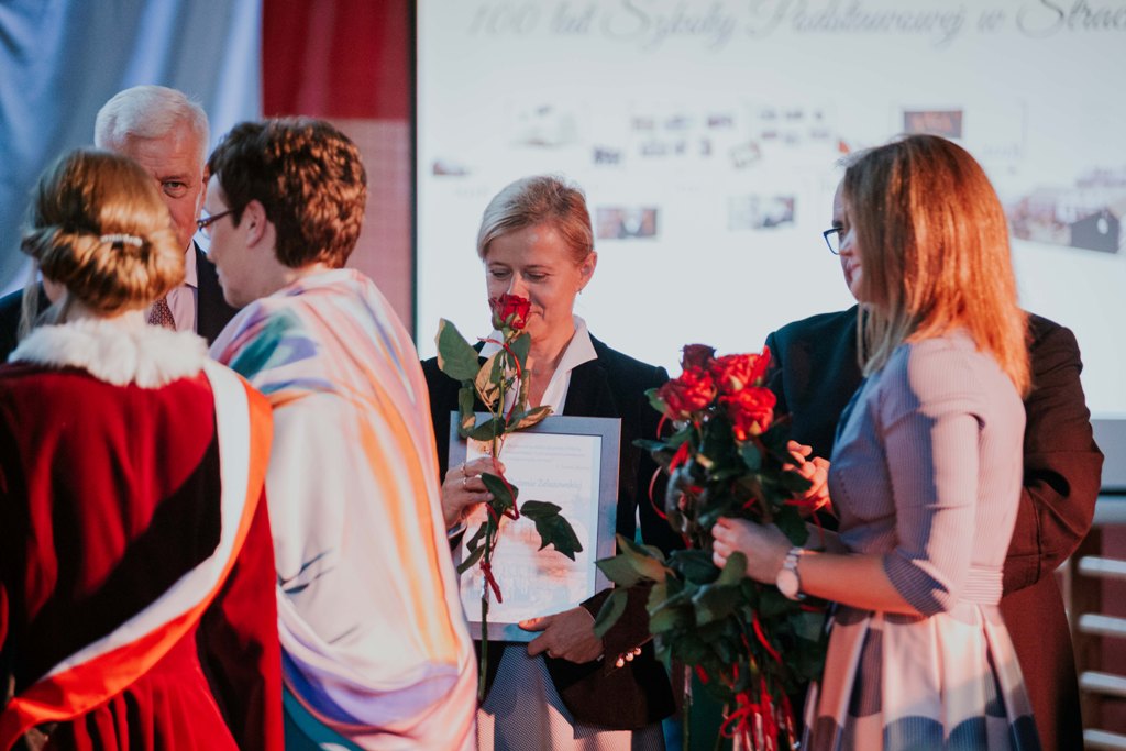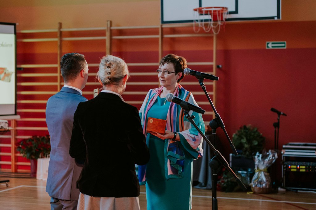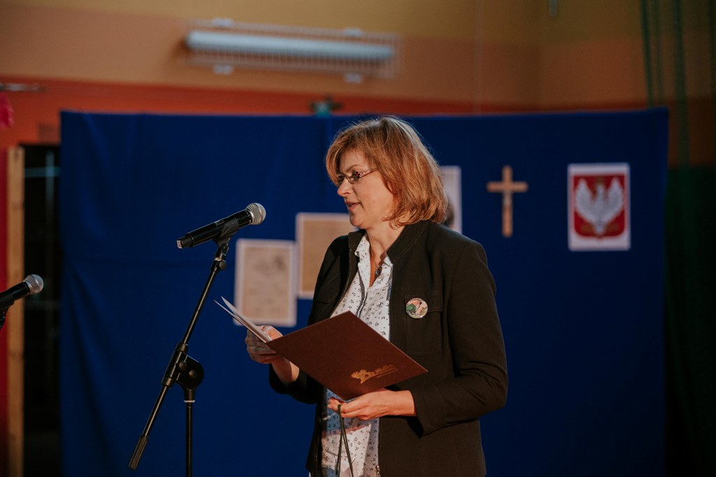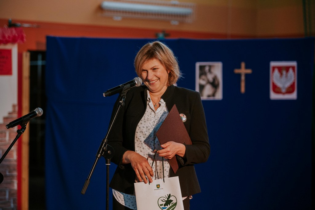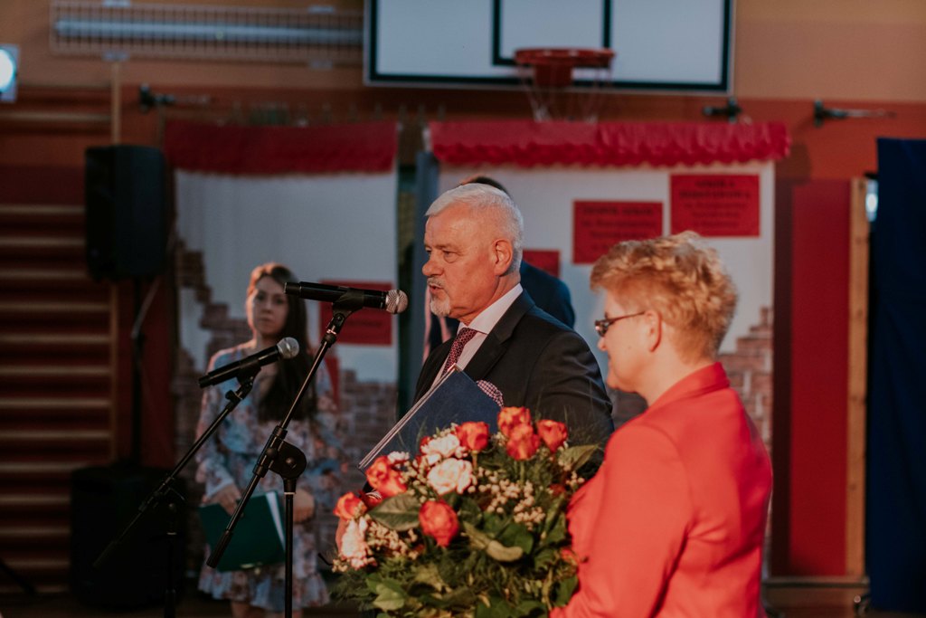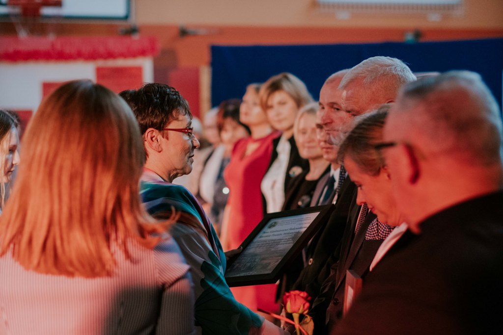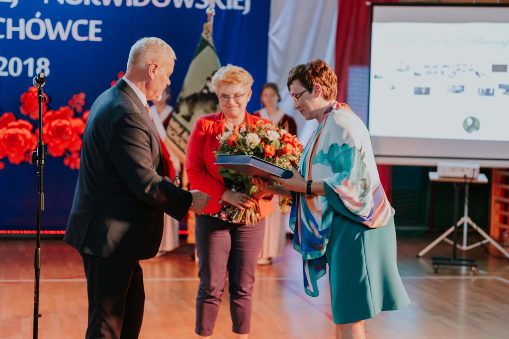 Następnie głos zabrał pan wójt Piotr Orzechowski i zaproszeni goście. Na ręce pani Dyrektor popłynęło wiele słów uznania i gratulacji min. od Mazowieckiego Kuratora Oświaty p. Aureli Michałowskiej, a pani Bożena Żelazowska w imieniu marszałka Adama Struzika przekazała szkole medal Pro Mazovia za wybitne zasługi oraz całokształt działalności na rzecz Województwa Mazowieckiego.