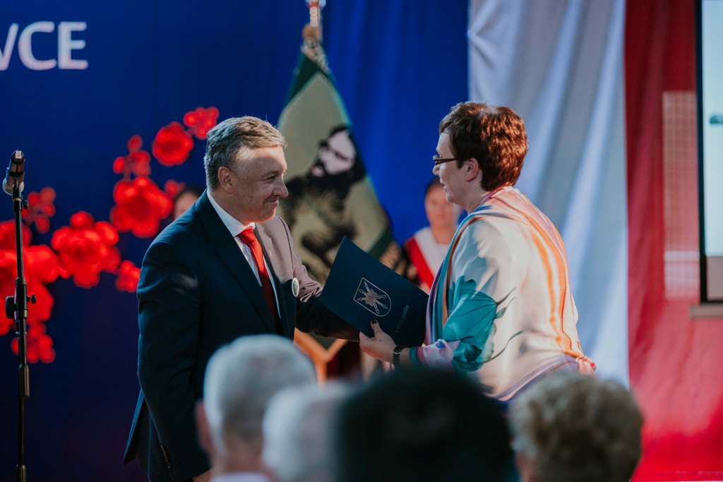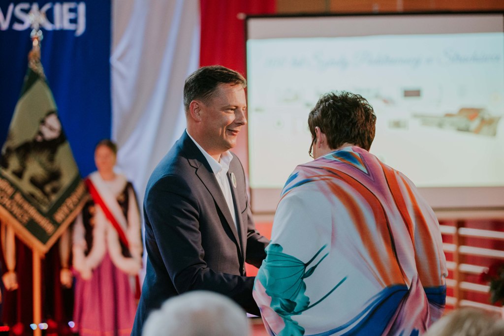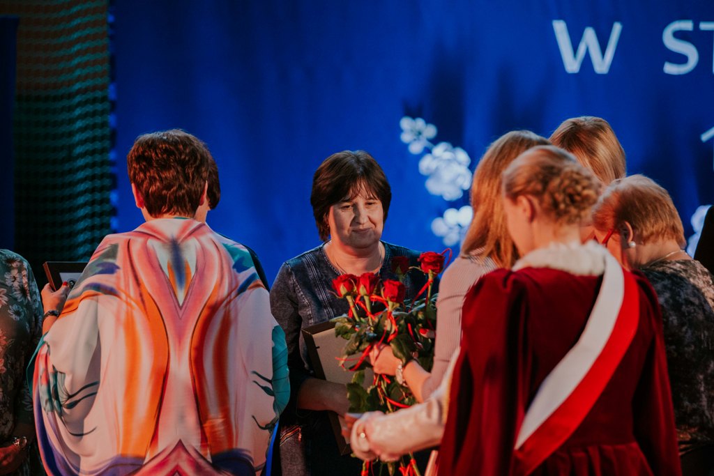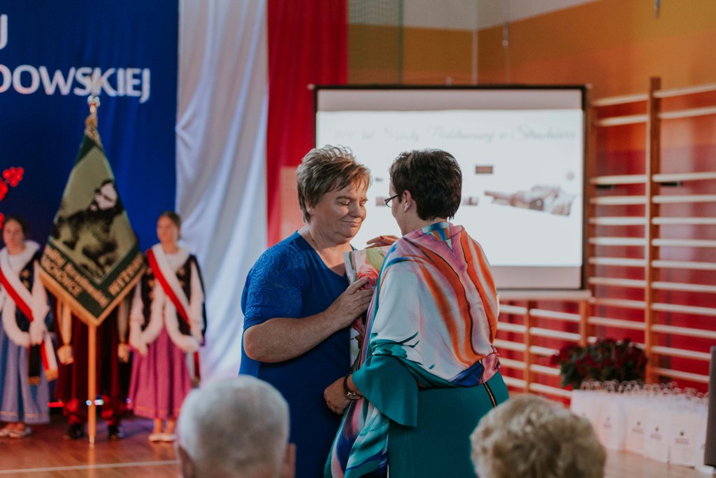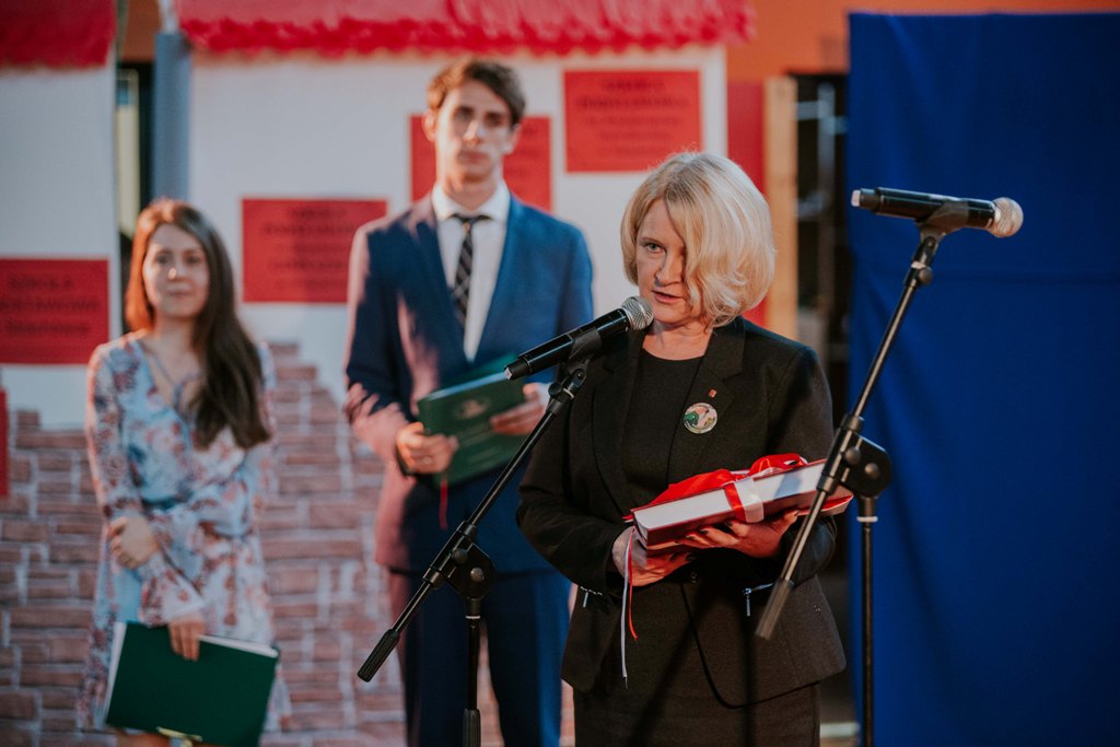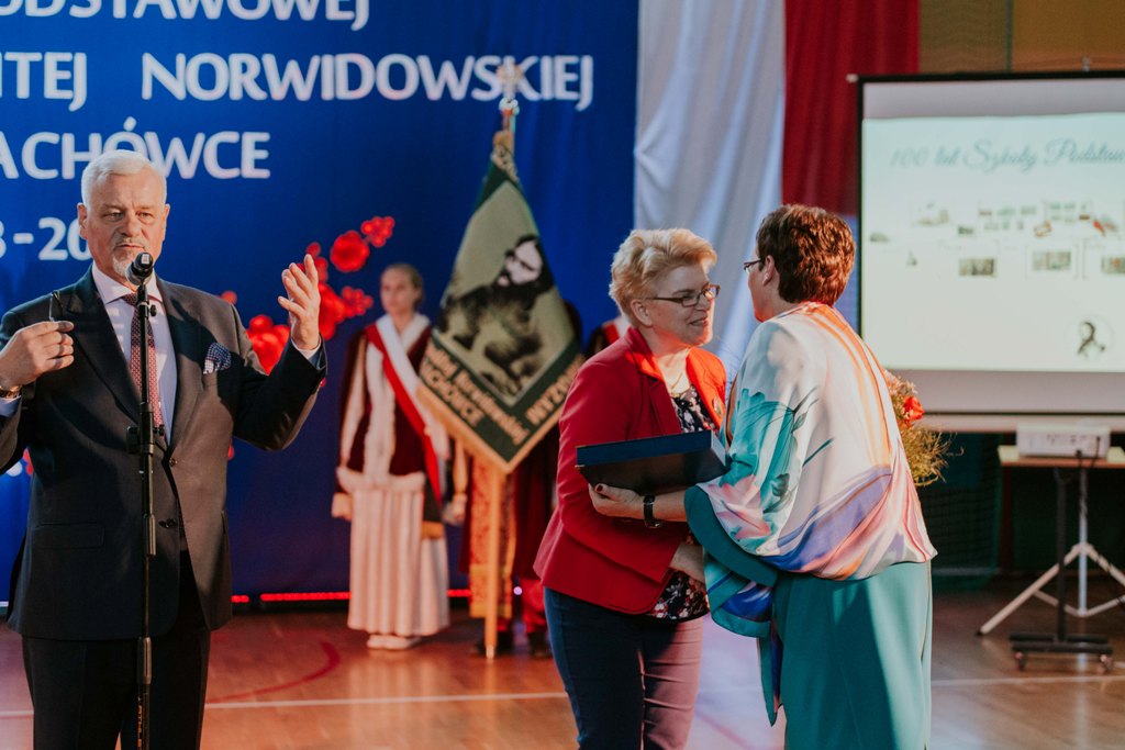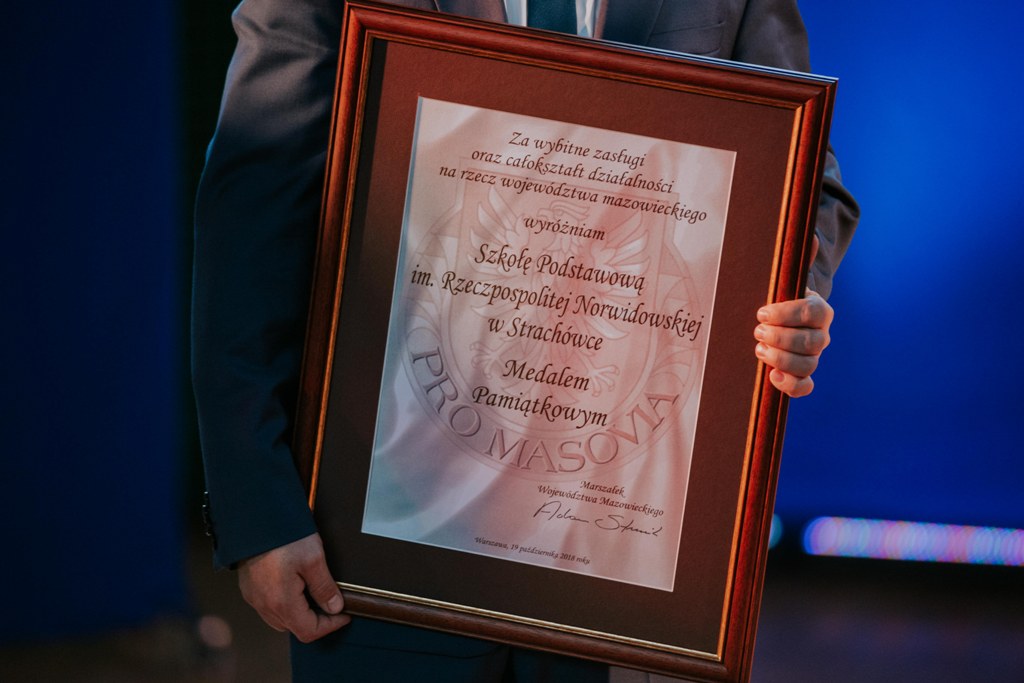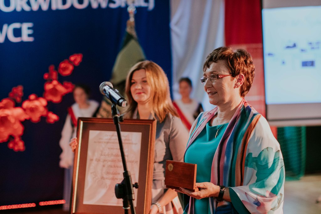 Następnie głos zabrał pan wójt Piotr Orzechowski i zaproszeni goście. Na ręce pani Dyrektor popłynęło wiele słów uznania i gratulacji min. od Mazowieckiego Kuratora Oświaty p. Aureli Michałowskiej, a pani Bożena Żelazowska w imieniu marszałka Adama Struzika przekazała szkole medal Pro Mazovia za wybitne zasługi oraz całokształt działalności na rzecz Województwa Mazowieckiego.