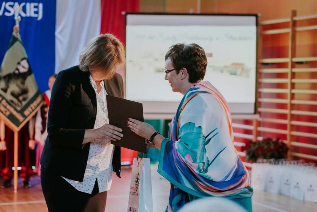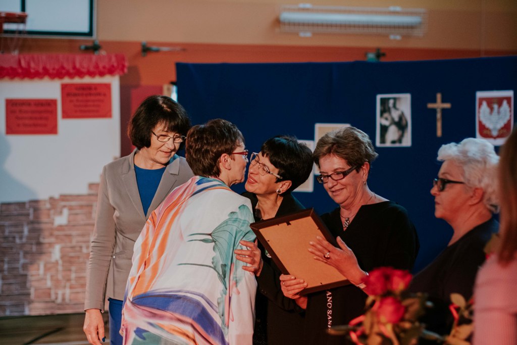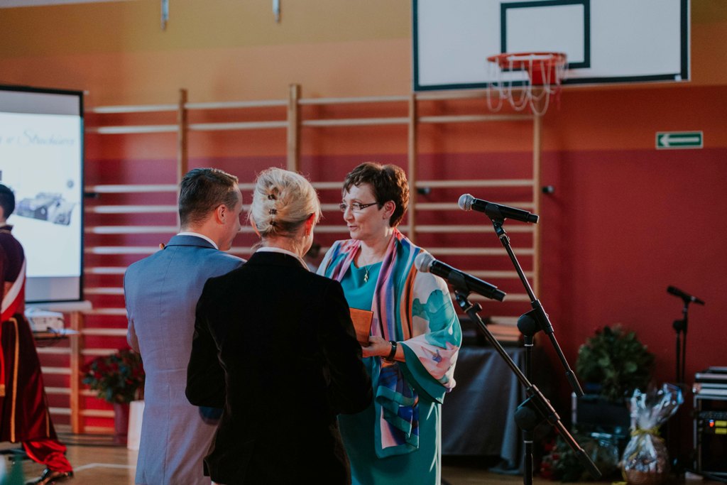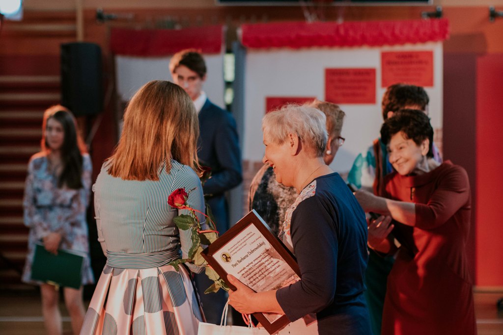 Byli dyrektorzy i nauczyciele emeryci oraz goście otrzymali pamiątkowe dyplomy, publikację o szkole i drobne upominki torby i kubeczki wykonane przez uczniów.