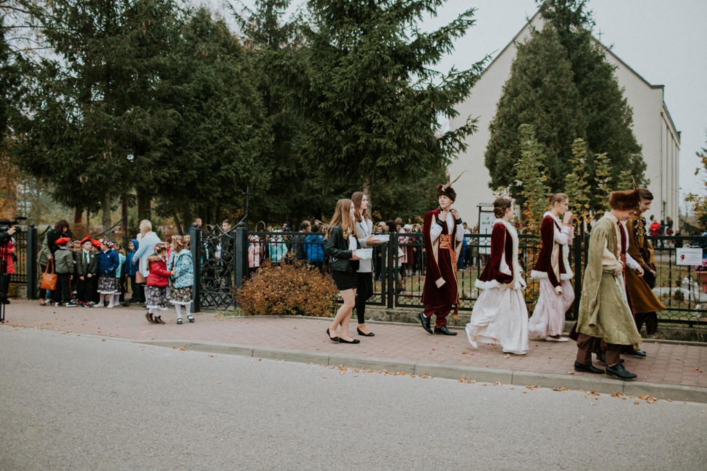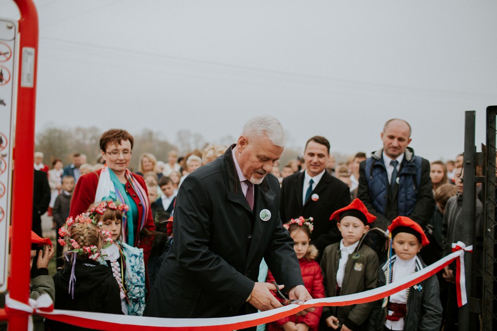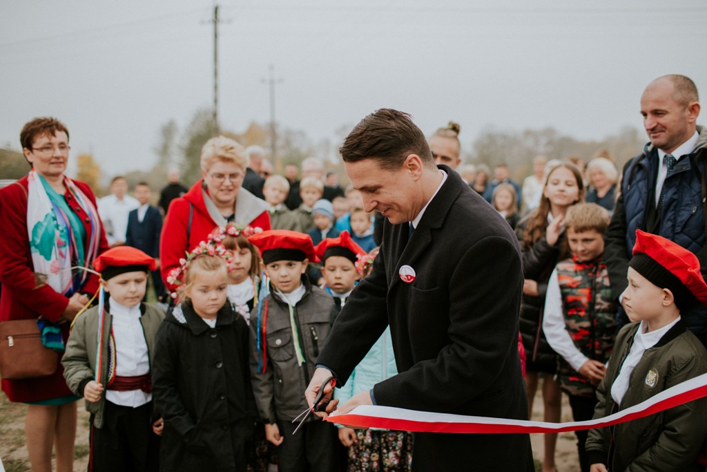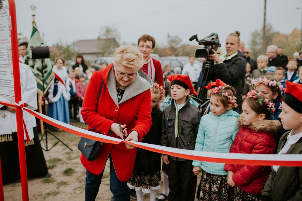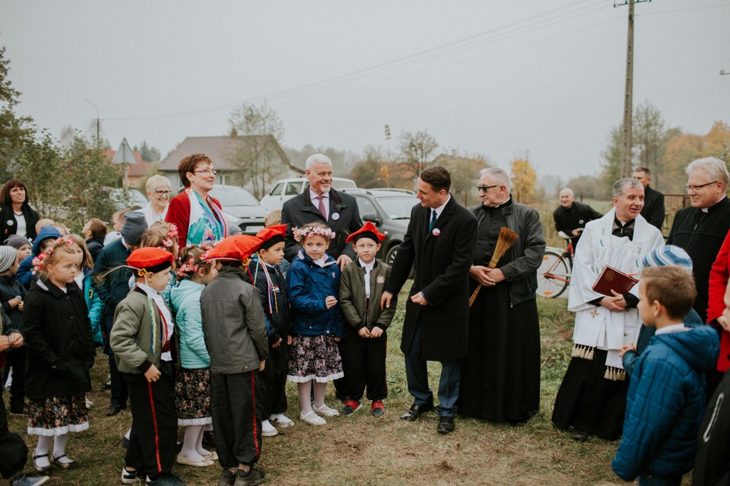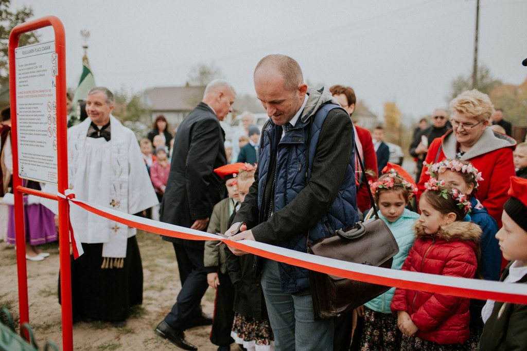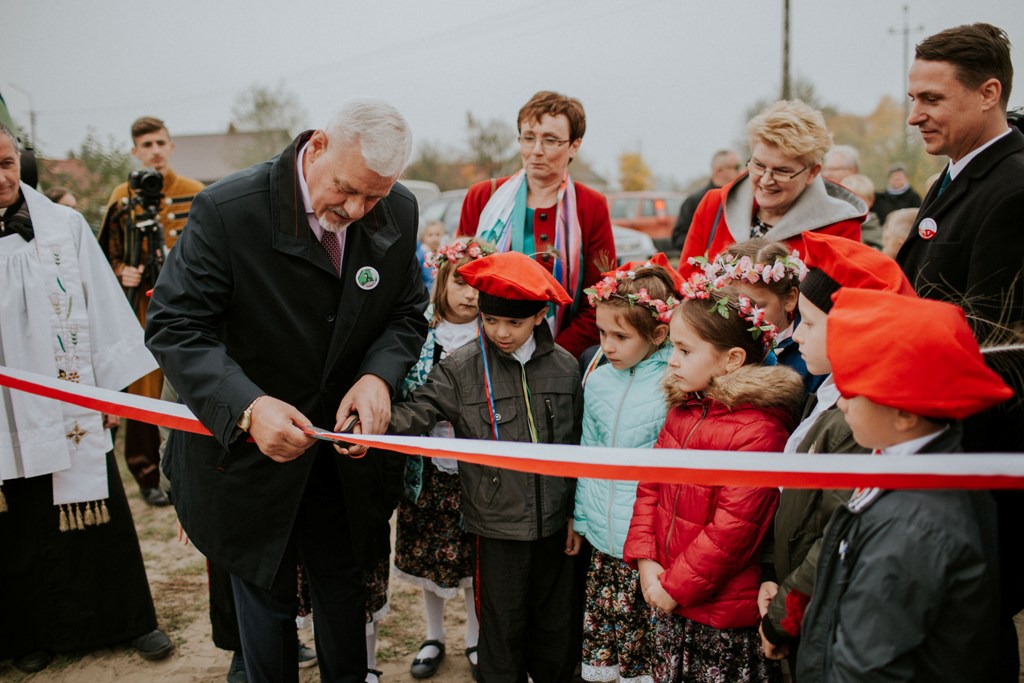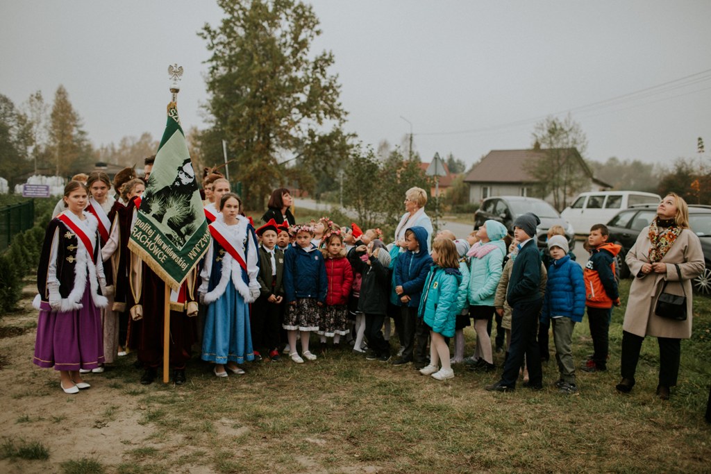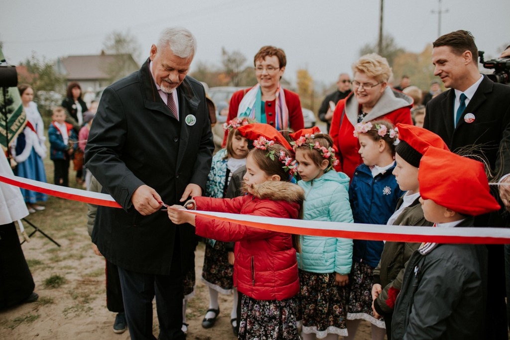 Następnie zebrani udali się do szkoły. Pierwszy przystanek pochodu zaplanowany był przy Otwartej Strefie Aktywności. To nowy plac zabaw i siłownia dla dzieci i dorosłych powstała staraniem wójta Piotra Orzechowskiego i Rady Gminy. Przecięcia wstęgi dokonali starosta powiatu wołomińskiego p. Kazimierz Rakowski, wójt Gminy Strachówka, wizytator Mazowieckiego Kuratorium Oświaty w Warszawie p. Grzegorz Telec, dyrektor szkoły Grażyna Kapaon i najmłodsze dzieci. Następnie odsłonięto tablicę pamiątkową 100 –lecia szkoły.
