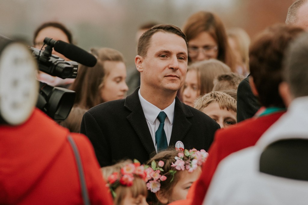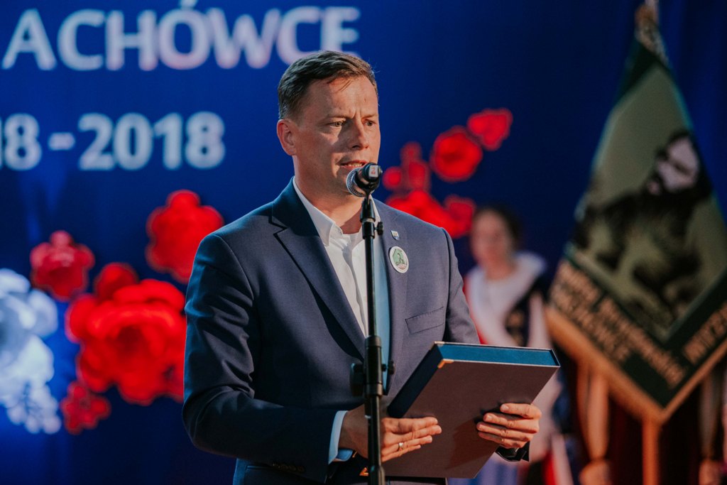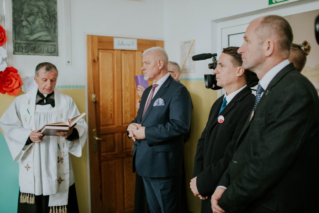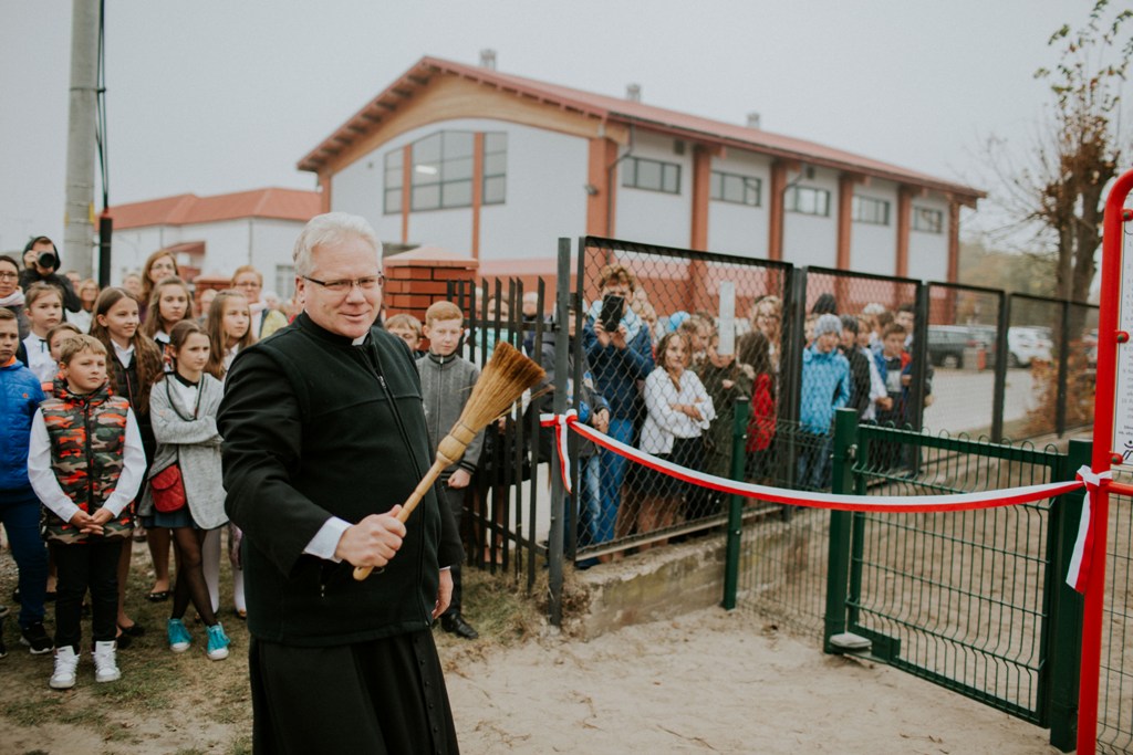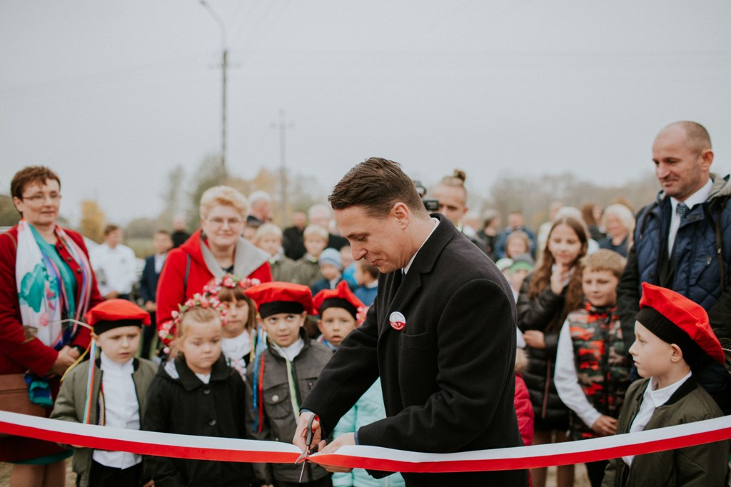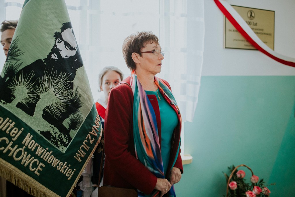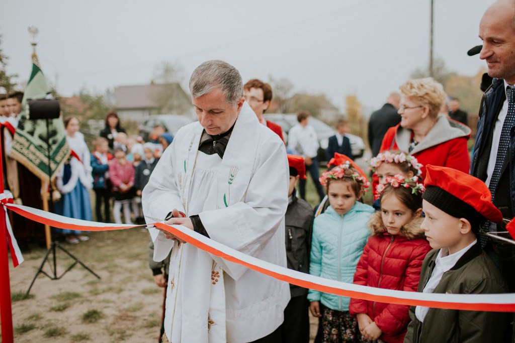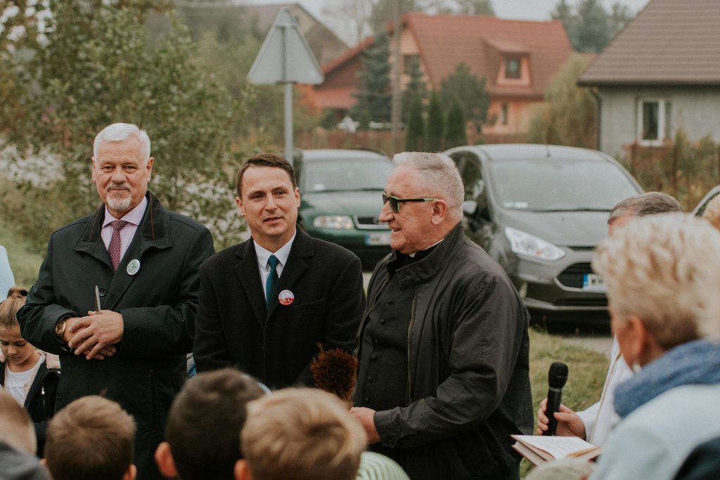 Następnie zebrani udali się do szkoły. Pierwszy przystanek pochodu zaplanowany był przy Otwartej Strefie Aktywności. To nowy plac zabaw i siłownia dla dzieci i dorosłych powstała staraniem wójta Piotra Orzechowskiego i Rady Gminy. Przecięcia wstęgi dokonali starosta powiatu wołomińskiego p. Kazimierz Rakowski, wójt Gminy Strachówka, wizytator Mazowieckiego Kuratorium Oświaty w Warszawie p. Grzegorz Telec, dyrektor szkoły Grażyna Kapaon i najmłodsze dzieci. Następnie odsłonięto tablicę pamiątkową 100 –lecia szkoły.