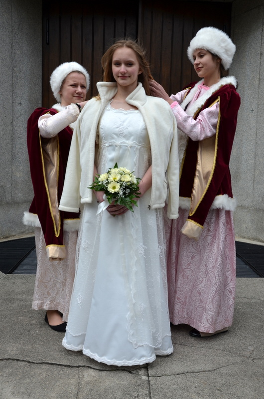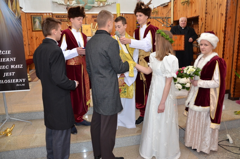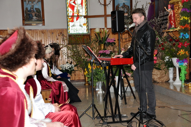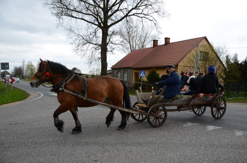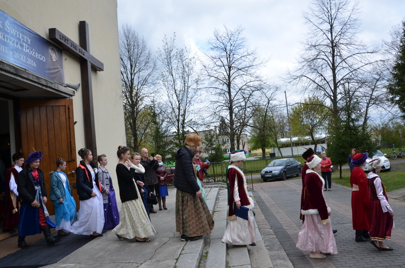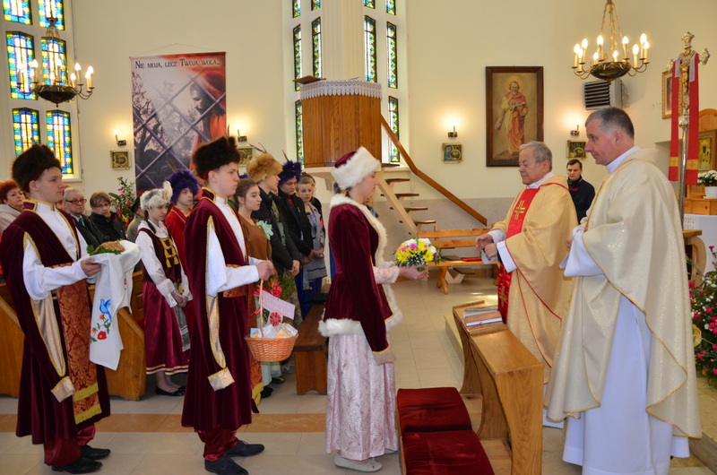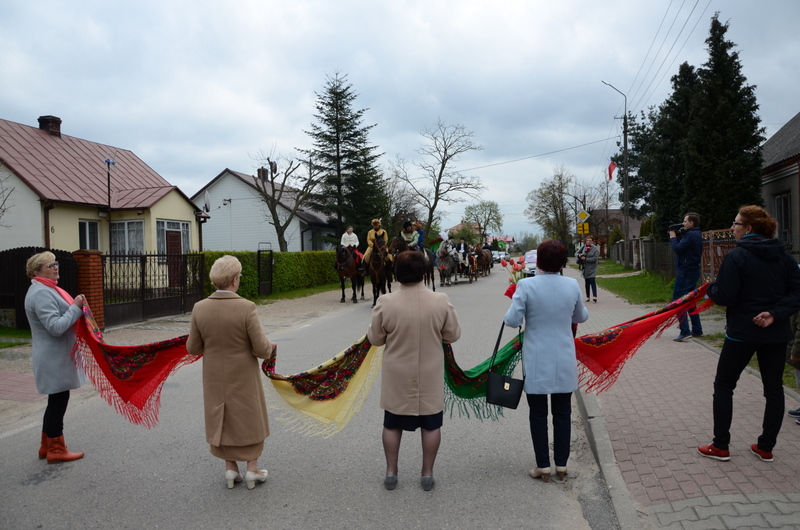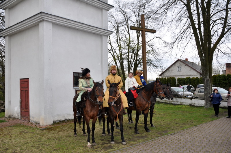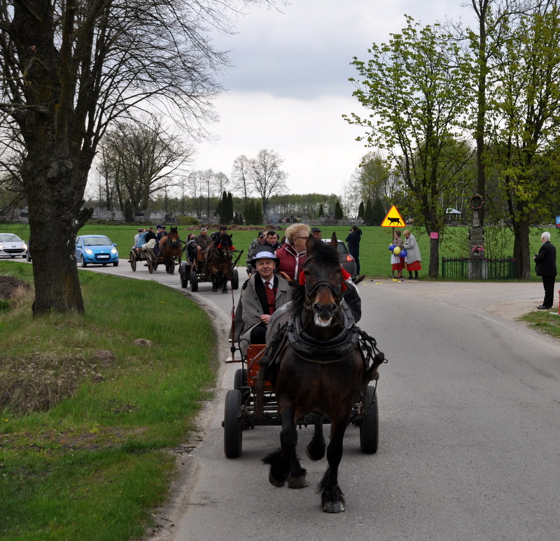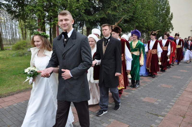 W samo południe w kościele p.w. Wniebowzięcia NMP Mszę świętą, na której modliliśmy się w intencji rodziny Sobieskich i Norwidów odprawił w koncelebrze z ks. Janem ksiądz proboszcz Mieczysław Jerzak. Po Mszy św. na stopniach kościołach rozpoczęła się rekonstrukcja szlacheckiego wesela Ludwiki Ździeborskiej i Jana Norwida. Goście obejrzeli moment oświadczyn i zaręczyn w dworze Hilarii i Józefa Sobieskiego po czym w korowodzie za ułanami ze Stowarzyszenia I Pułku Ułanów Krechowieckich z Kobyłki, bryczkami i wozami wyruszyli do Sulejowia. Po drodze korowód zatrzymywał się przy tradycyjnych „weselnych bramkach” przygotowanych przez panie z Kół Gospodyń Wiejskich ze Strachówki, Jadwisina i Równego. W kościele p.w. Trójcy Świętej uczestniczyliśmy w przepięknym koncercie Piotra Kajetana Matczuka „Rozmowa z piramidami”, który śpiewał utwory polskich romantyków. Fragment „Promethidiona” Norwida „bo nie jest światło, by pod korcem stało, ani sól ziemi do przypraw kuchennych. Bo piękno na to jest, by zachwycało do pracy, praca, by się zmartwychwstało” zaśpiewali wszyscy aż kilka razy. Po zaślubinach orszak wrócił do Strachówki, po drodze zatrzymując się przy miejscowym cmentarzu. „Młoda para” i „szlachta” złożyła kwiaty na grobie ks. Jakuba Dosta i ojca karmelity, do 1893 roku proboszcza parafii Sulejów.