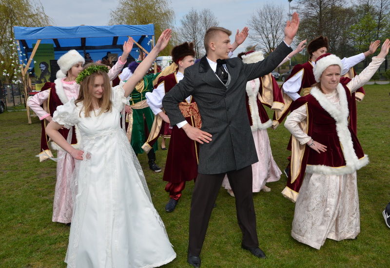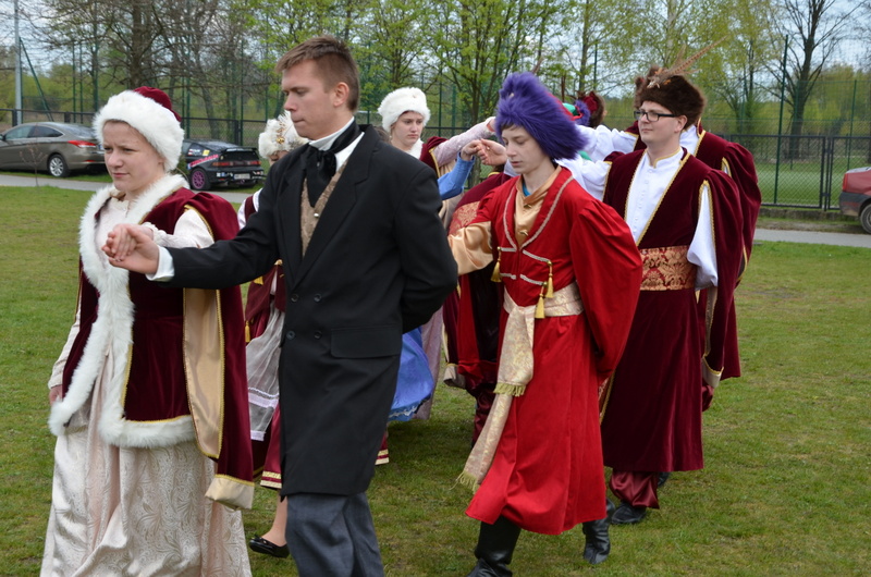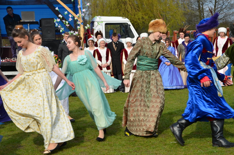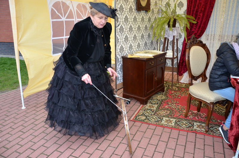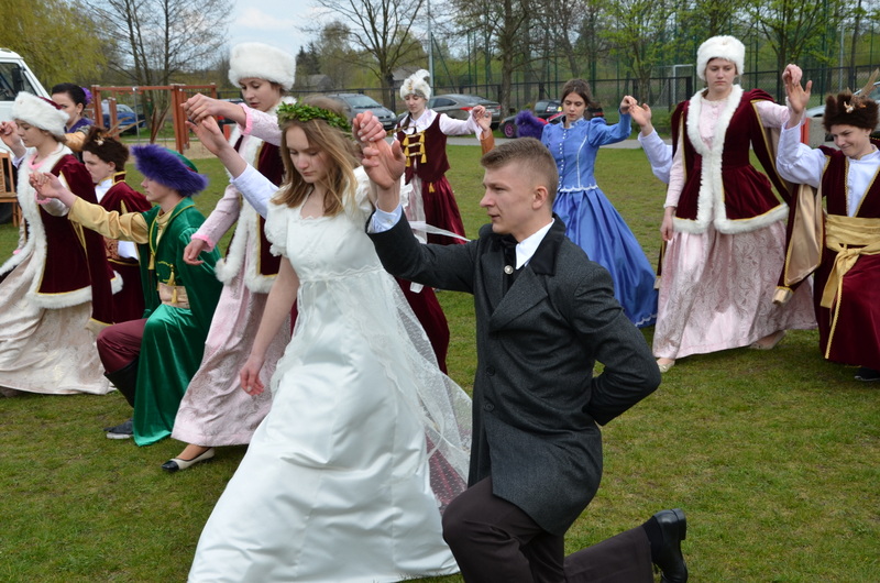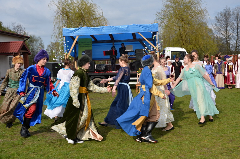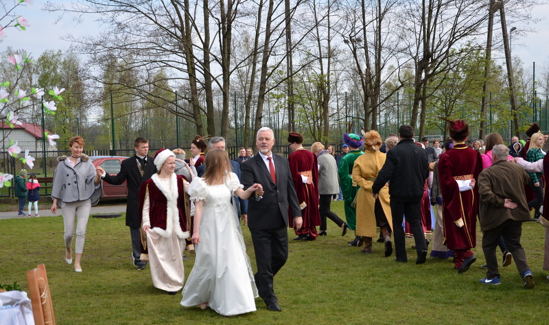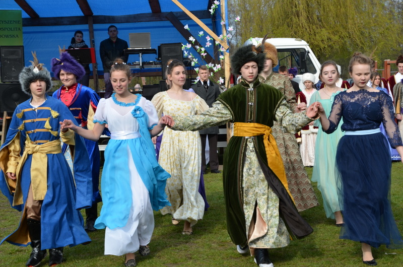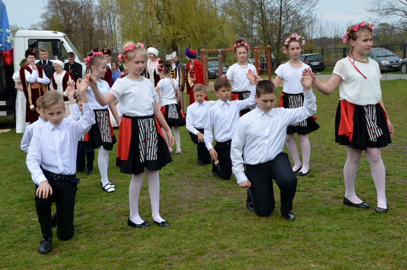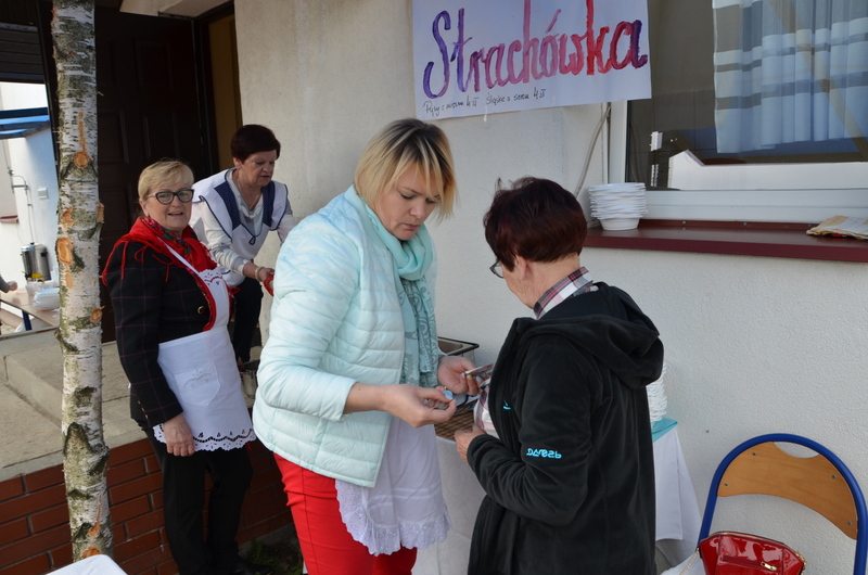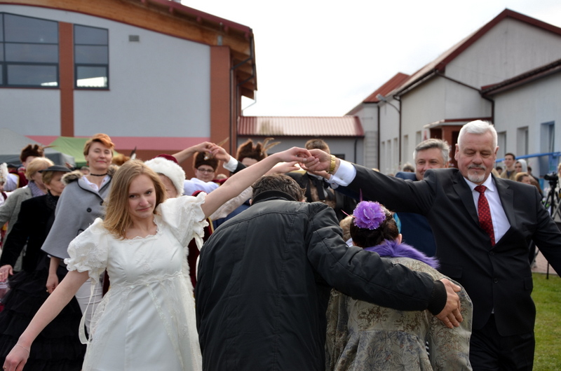 W Strachówce gimnazjaliści - aktorzy grupy rekonstrukcyjnej przygotowani przez polonistkę z Zespołu Szkół w Strachówce panią Renatę Ołdak, pokazali staropolskie zwyczaje powitania chlebem i solą, i oczepiny. Pięknie zatańczyli poloneza. Pod kierunkiem pani Ałły Mioduszewskiej dzieci z klasy czwartej i piątej zatańczyły kujawiaka, a gimnazjaliści z klasy drugiej mazura. Chętni pisali listy i uczyli się kaligrafii w XIX – wiecznym saloniku, do którego zapraszała pani Emilia Badurek. Pani Basia Janus, w stylowej sukni z epoki Norwida, pokazywała jak pogrzebaczem toczyć koło i fajerkę, i na czym polega zabawa w ciuciubabkę. Goście tłumnie odwiedzali foto-budkę i robili sobie zdjęcia w stylowych kapeluszach i cylindrach. Panie z KGW w Strachówce i Równym serwowały tradycyjne pierogi i kartacze, a Rada Rodziców kawę, herbatę i ciasto. Wszystkim przygrywał zespół „Duet gama”
