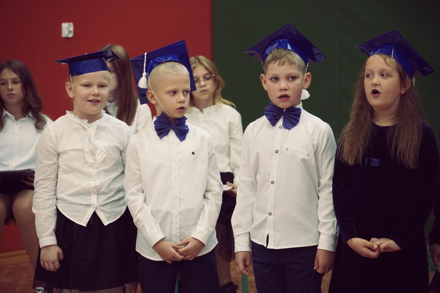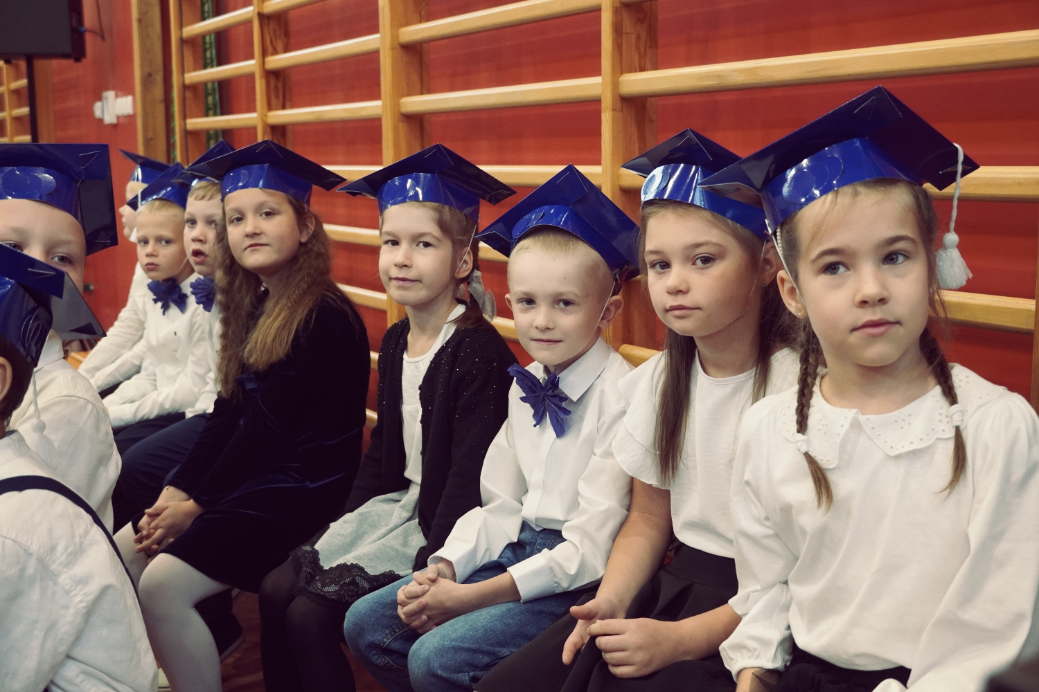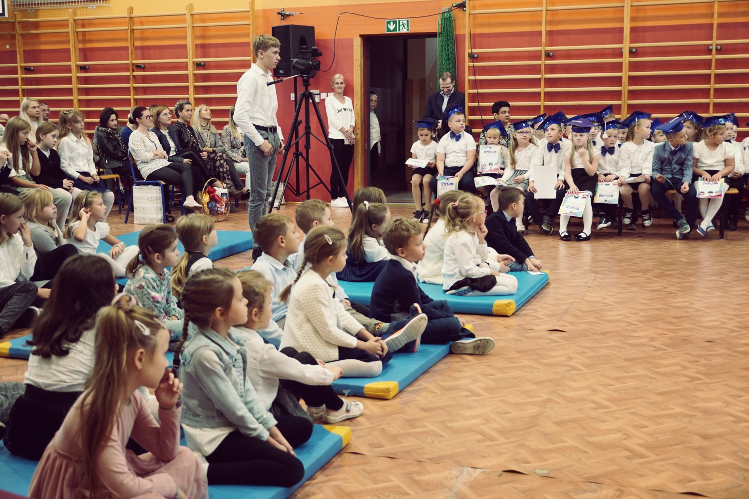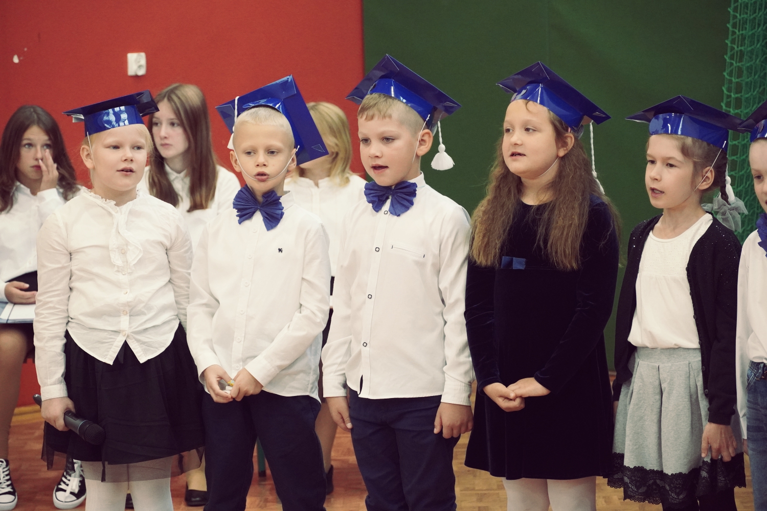 Dziękujemy Radzie Rodziców za prezent i pomysłowe życzenia. Rodzicom za zorganizowanie poczęstunku i spotkania po ślubowaniu. Bartkowi za pracę za kamerą, a Michałowi za obsługę nagłośnienia.