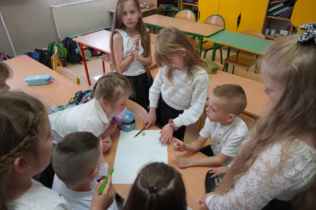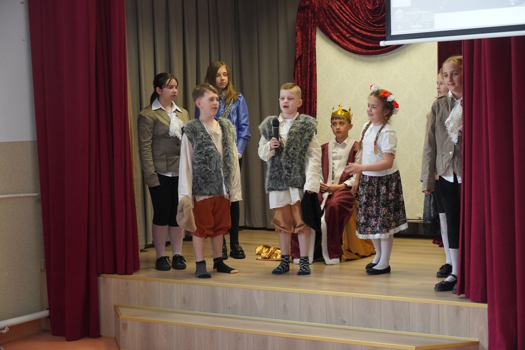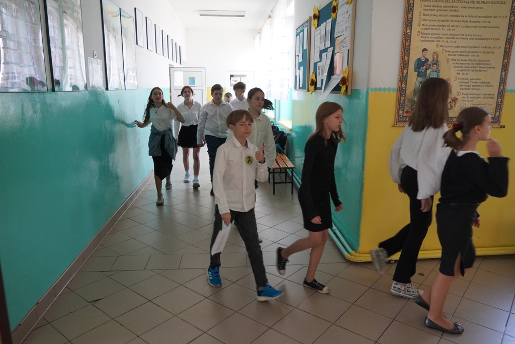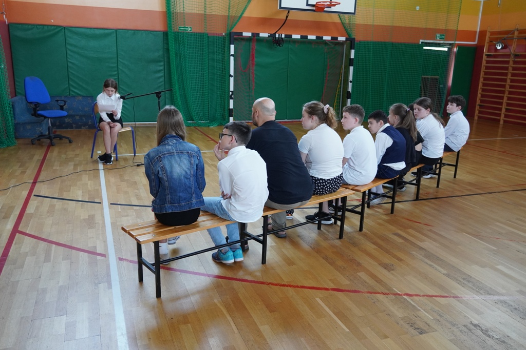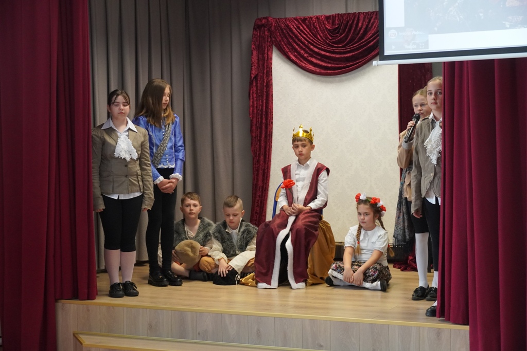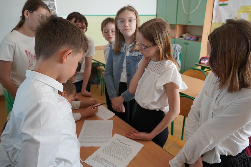 Z okazji Święta Konstytucji 3 Maja grupa uczniów z klasy czwartej i szóstej przedstawiła nam interpretację tamtych wydarzeń. Następnie cała społeczność szkolna została zaangażowana w spacer interaktywny w grupach: były zagadki, zadania plastyczne, muzyczne oraz taneczne.