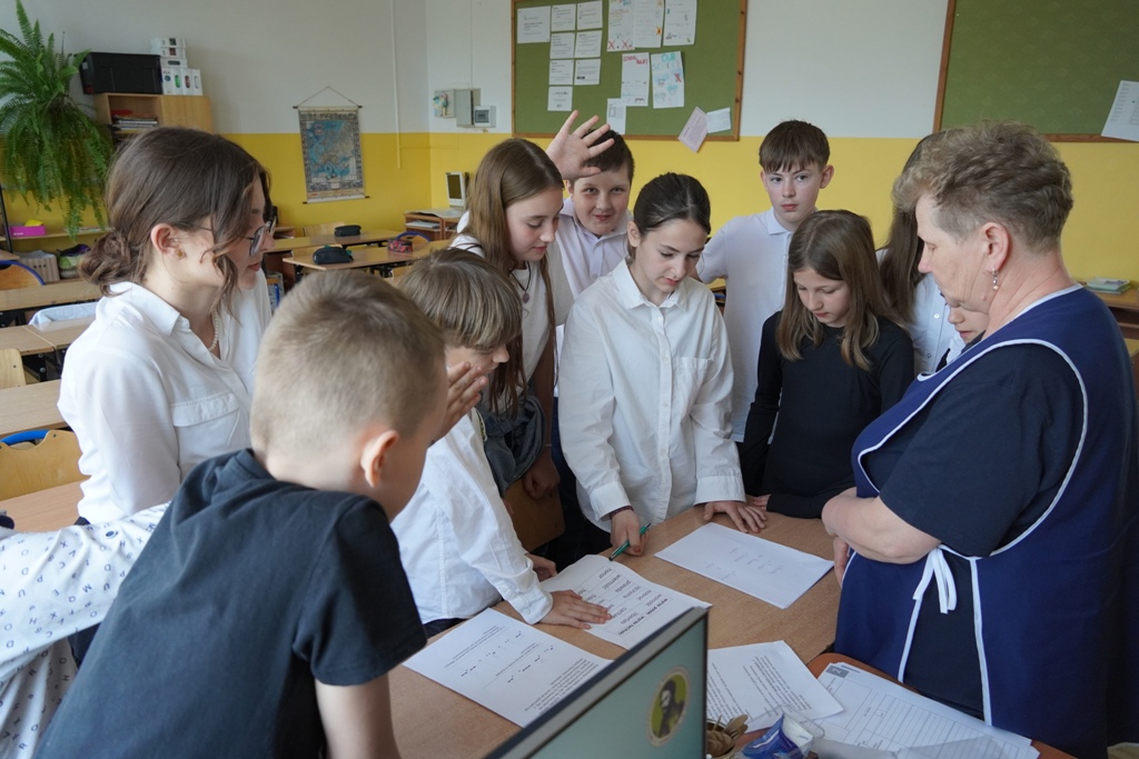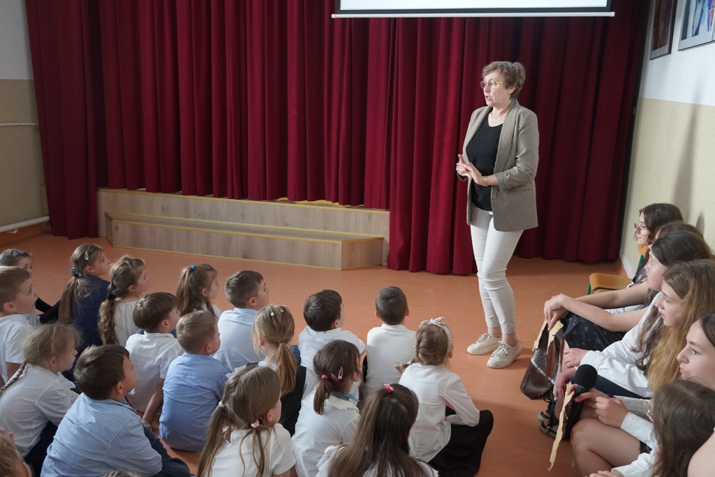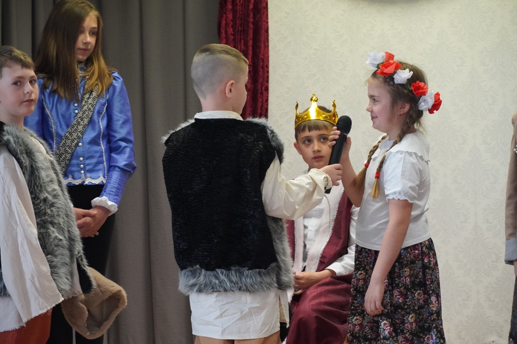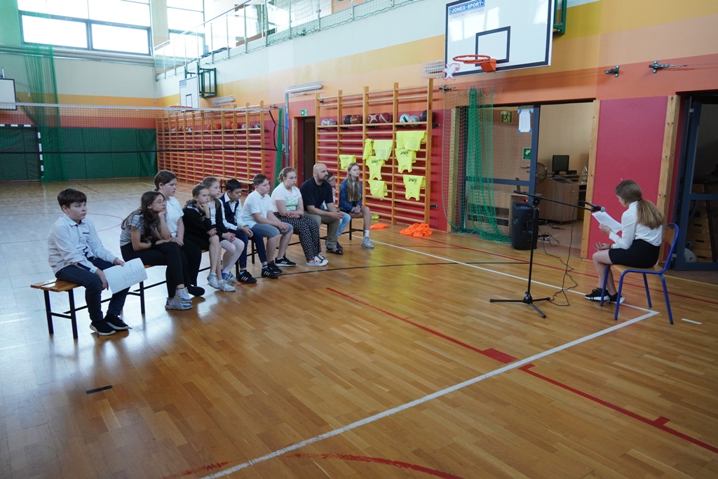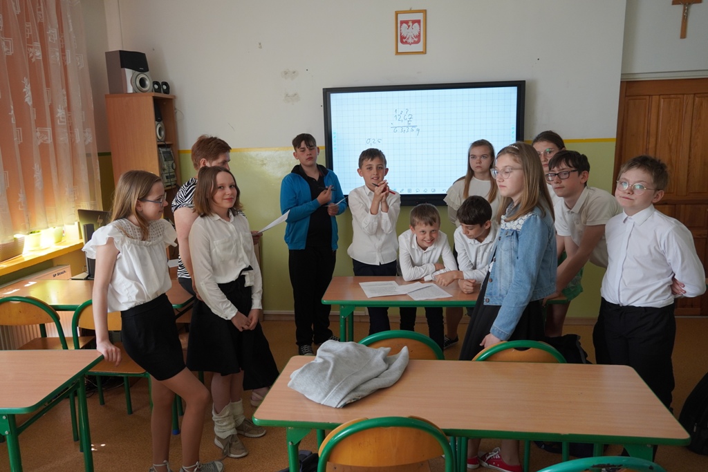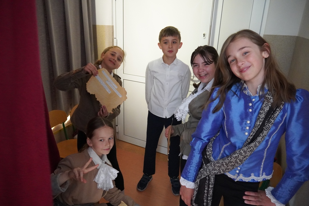 Z okazji Święta Konstytucji 3 Maja grupa uczniów z klasy czwartej i szóstej przedstawiła nam interpretację tamtych wydarzeń. Następnie cała społeczność szkolna została zaangażowana w spacer interaktywny w grupach: były zagadki, zadania plastyczne, muzyczne oraz taneczne.