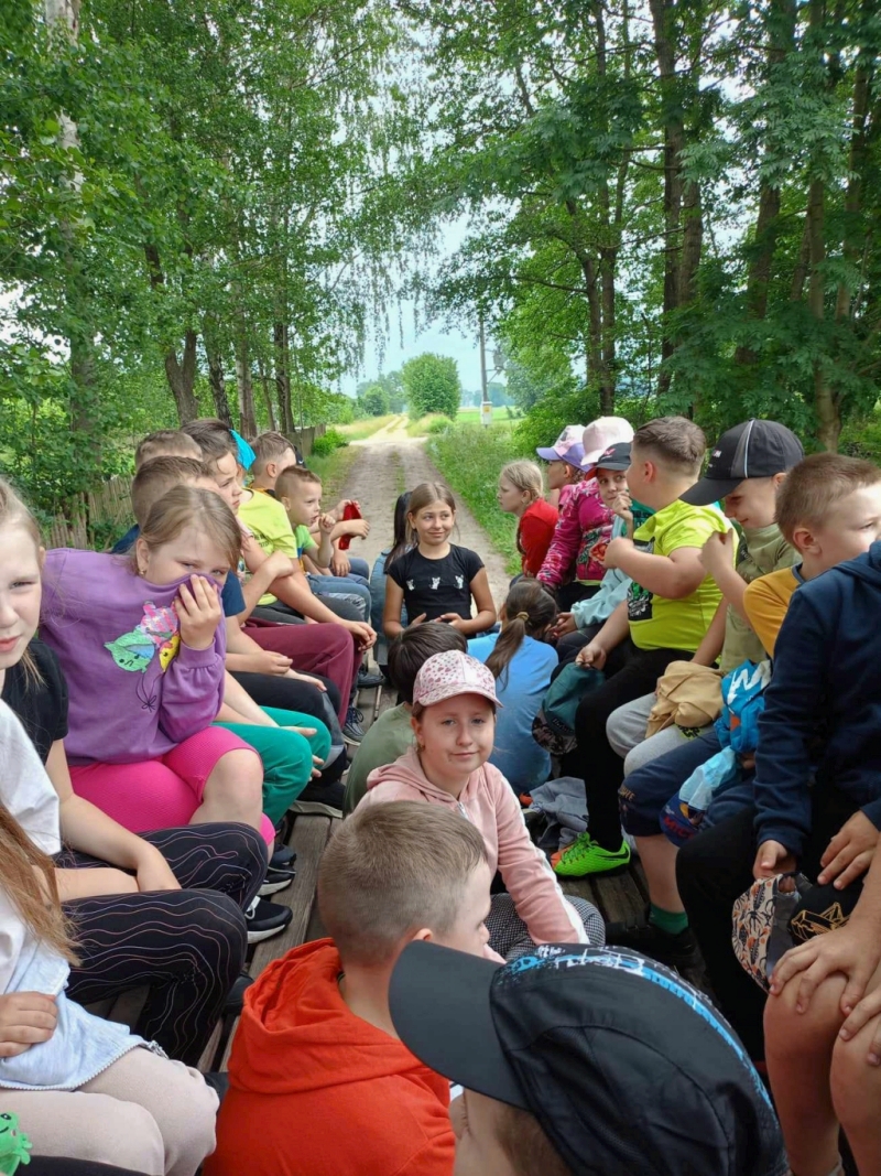 * Przejażdżka konnym wozem do lasu.