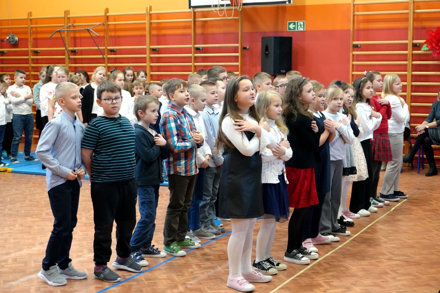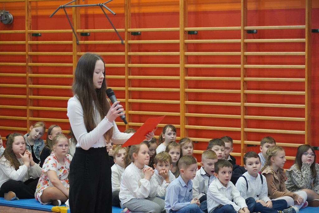 Dziękuję serdecznie p. Joli Sawickiej-Łopacie za koordynowanie prac nad wydarzeniem, wychowawcom p. Basi Janus, Iwonie Gajdzie, Basi Sajnóg, Urszuli Markowicz i Agnieszce Stachurskiej za przygotowanie uczniów. Pracownikom obsługi za zorganizowanie herbatki i poczęstunku oraz Radzie Rodziców za słodkości. Naszym uczniom: Ani, Lukasowi i Julianowi za obsługę uroczystości.
