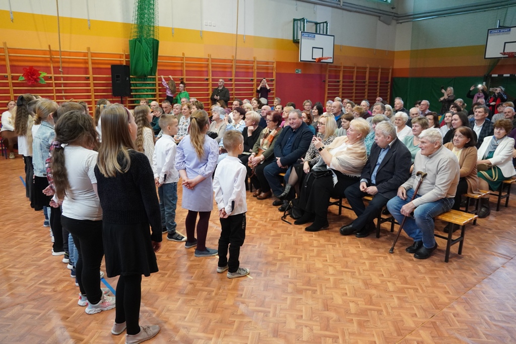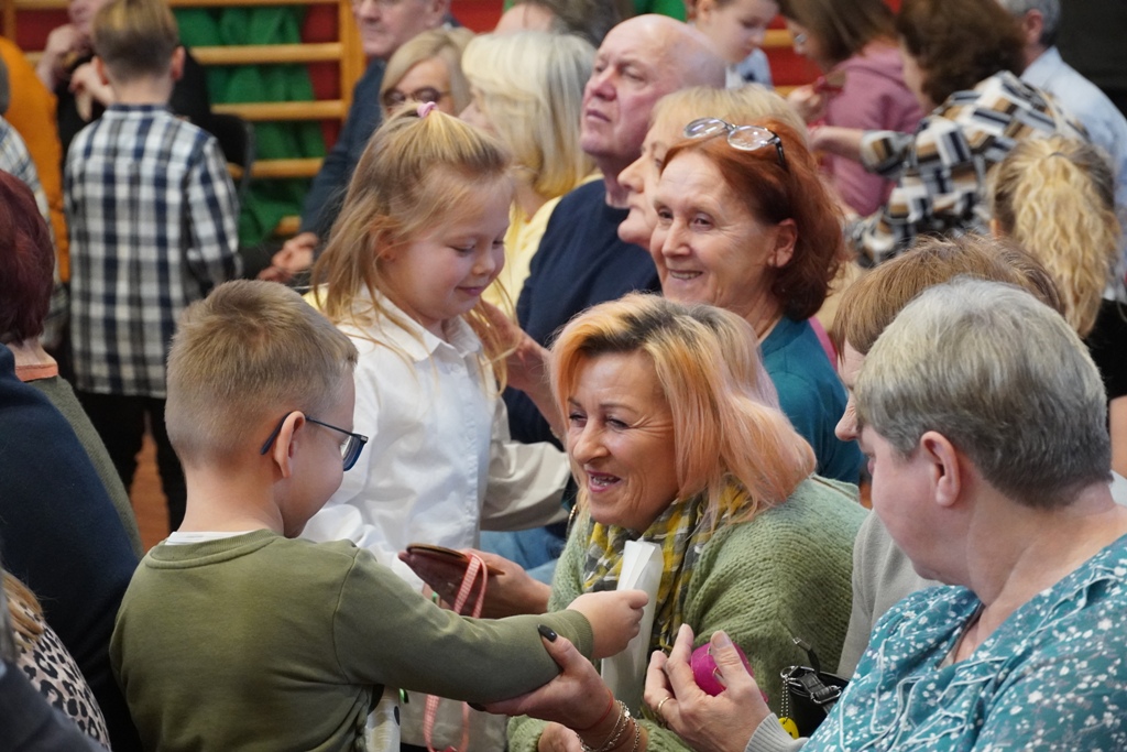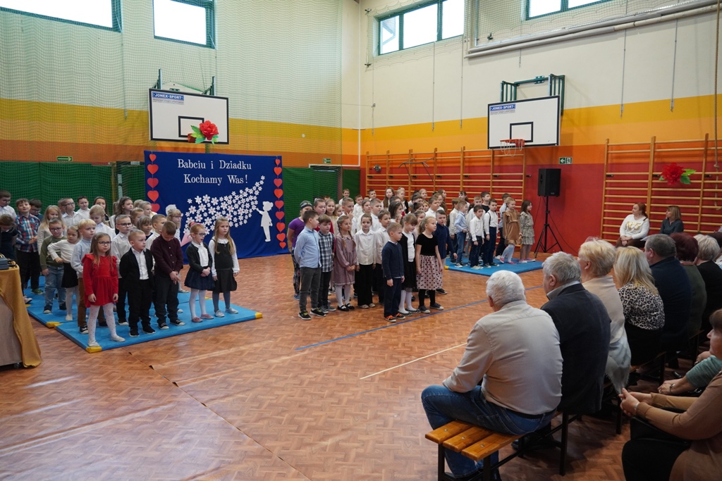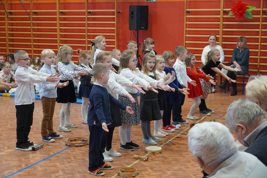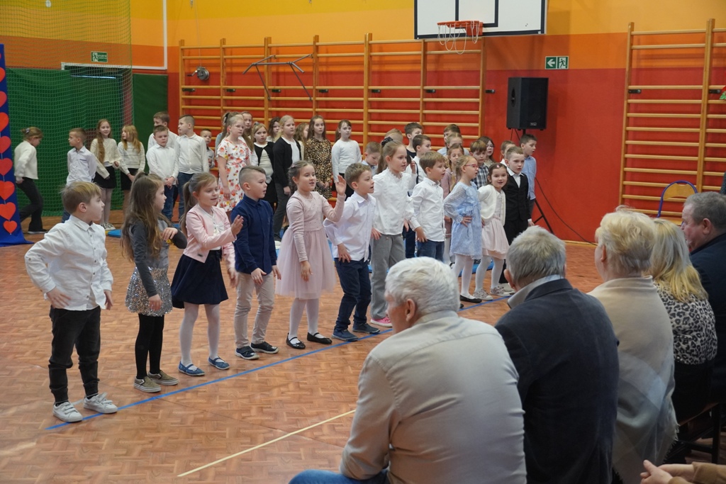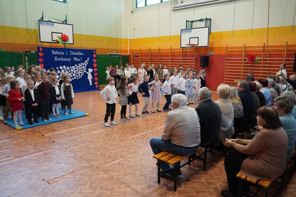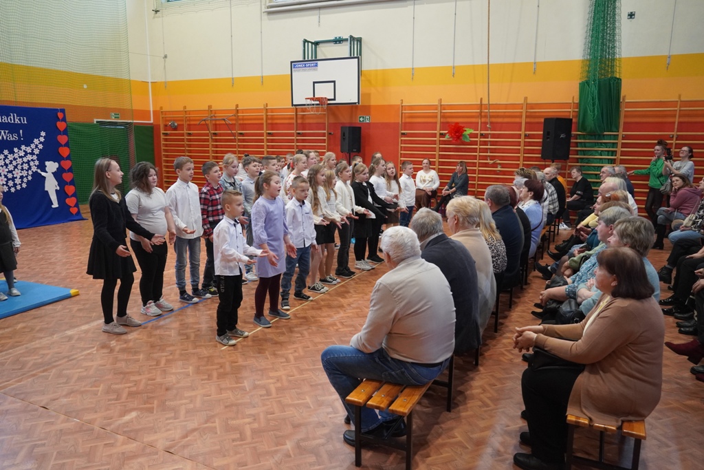 Przyjęliśmy dzisiaj w szkole wyjątkowych gości. Na zaproszenie najmłodszych uczniów, odwiedziły nas babcie i dziadkowie. Nasi uczniowie śpiewem i humorystycznymi scenkami, wyrazili wdzięczność za okazywaną im na co dzień miłość i troskę. Babcia fitness lub influencerka, a może dziadek DJ? To tylko wybrane role, w które wcielili się młodzi aktorzy. Zwieńczeniem części artystycznej było odśpiewanie sto lat dla babć i dziadków. Następnie zaprosiliśmy naszych gości do nowego skrzydła szkoły, na salę świetlicową, gdzie przygotowaliśmy słodki poczęstunek. Mamy nadzieję, że babcie i dziadkowie czuli się naszych murach dobrze!