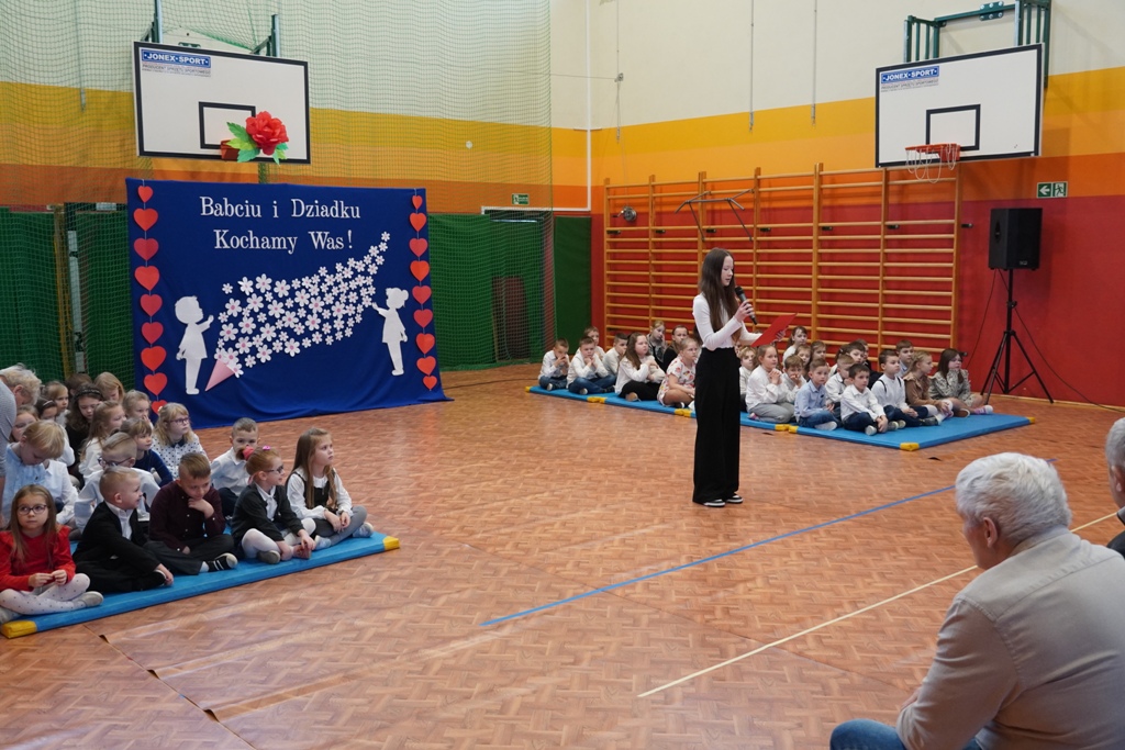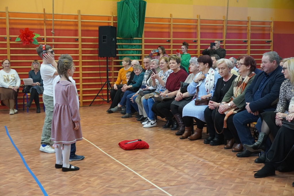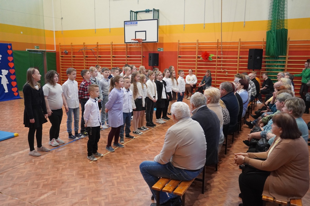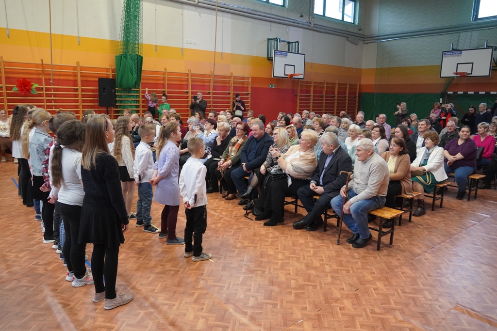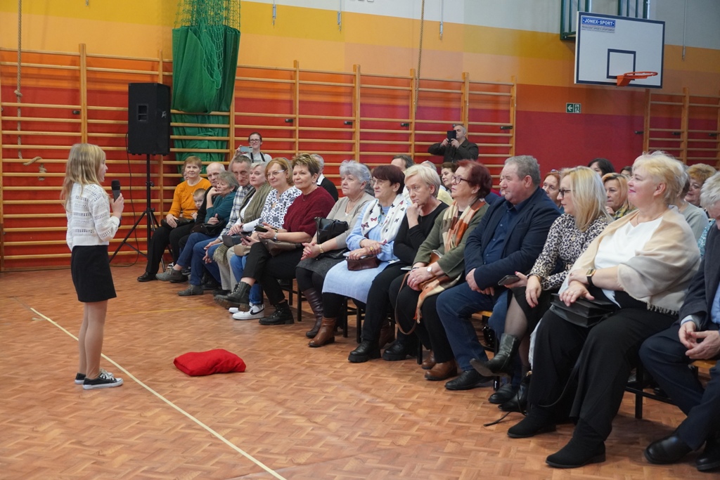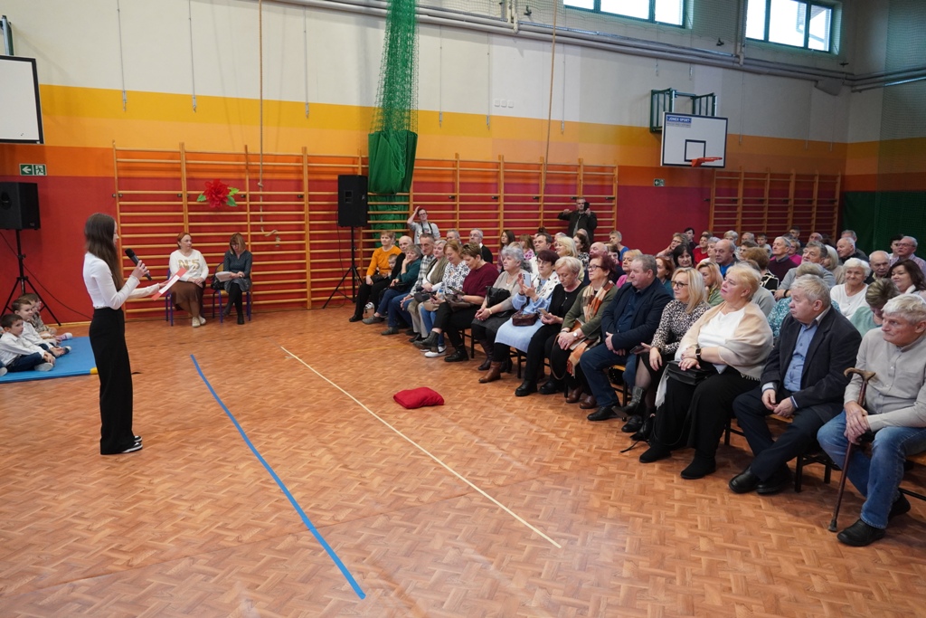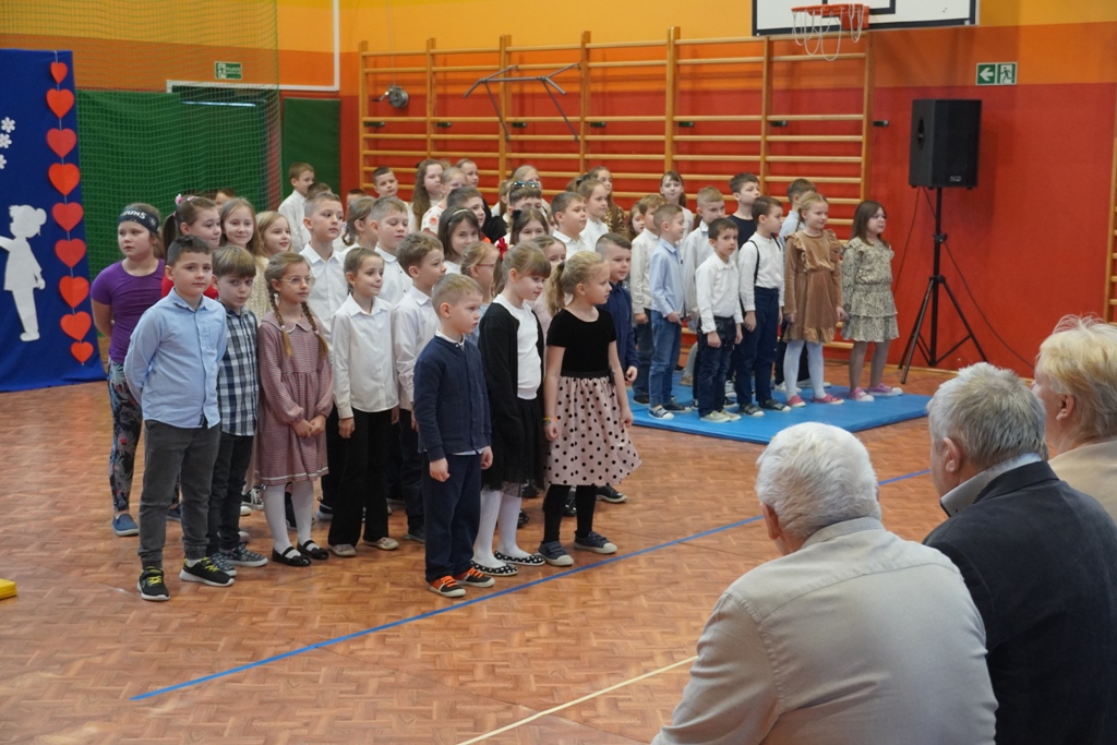 Przyjęliśmy dzisiaj w szkole wyjątkowych gości. Na zaproszenie najmłodszych uczniów, odwiedziły nas babcie i dziadkowie. Nasi uczniowie śpiewem i humorystycznymi scenkami, wyrazili wdzięczność za okazywaną im na co dzień miłość i troskę. Babcia fitness lub influencerka, a może dziadek DJ? To tylko wybrane role, w które wcielili się młodzi aktorzy. Zwieńczeniem części artystycznej było odśpiewanie sto lat dla babć i dziadków. Następnie zaprosiliśmy naszych gości do nowego skrzydła szkoły, na salę świetlicową, gdzie przygotowaliśmy słodki poczęstunek. Mamy nadzieję, że babcie i dziadkowie czuli się naszych murach dobrze!