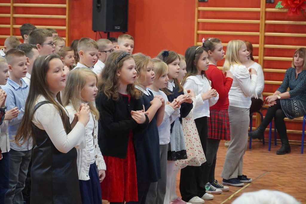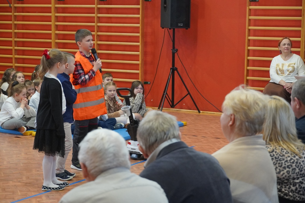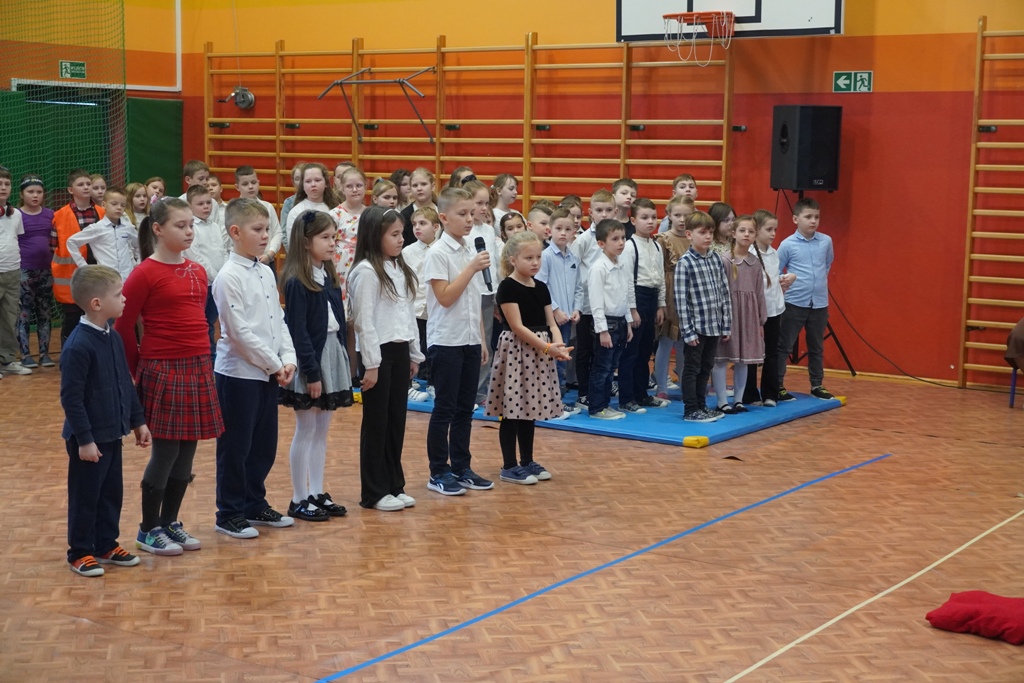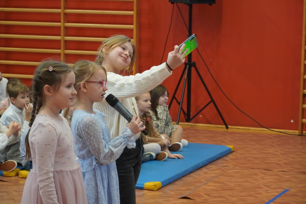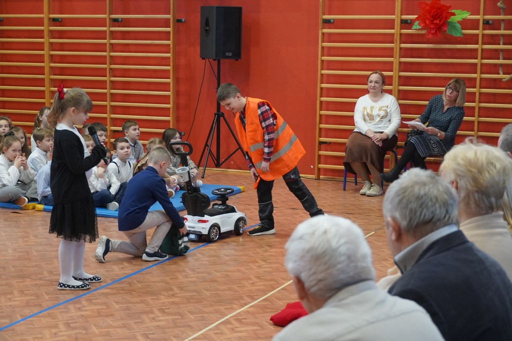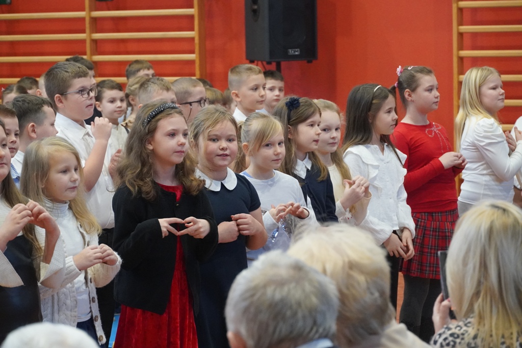 Przyjęliśmy dzisiaj w szkole wyjątkowych gości. Na zaproszenie najmłodszych uczniów, odwiedziły nas babcie i dziadkowie. Nasi uczniowie śpiewem i humorystycznymi scenkami, wyrazili wdzięczność za okazywaną im na co dzień miłość i troskę. Babcia fitness lub influencerka, a może dziadek DJ? To tylko wybrane role, w które wcielili się młodzi aktorzy. Zwieńczeniem części artystycznej było odśpiewanie sto lat dla babć i dziadków. Następnie zaprosiliśmy naszych gości do nowego skrzydła szkoły, na salę świetlicową, gdzie przygotowaliśmy słodki poczęstunek. Mamy nadzieję, że babcie i dziadkowie czuli się naszych murach dobrze!