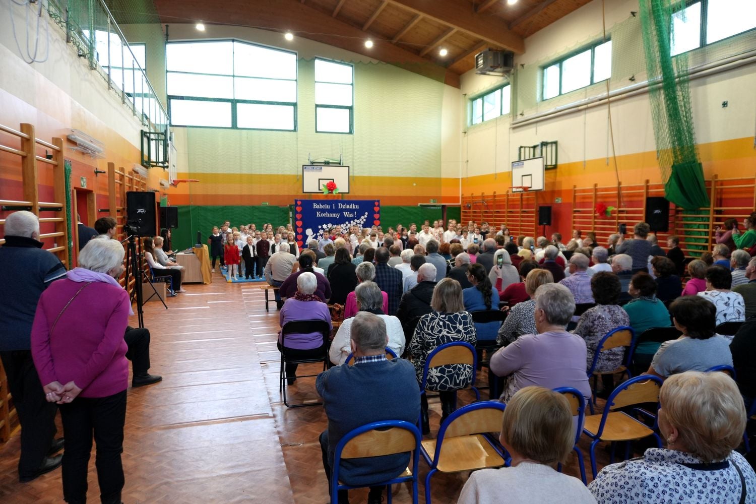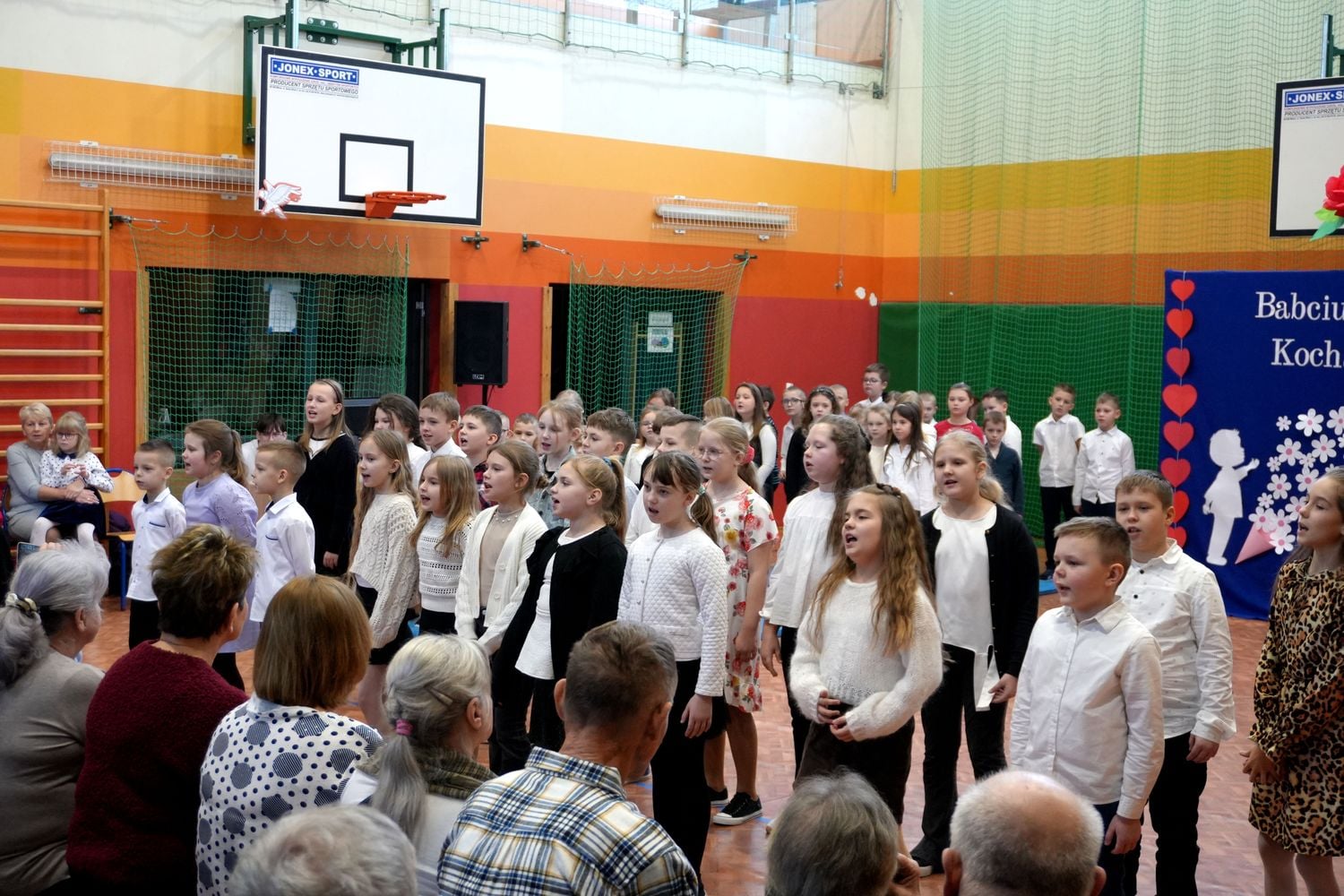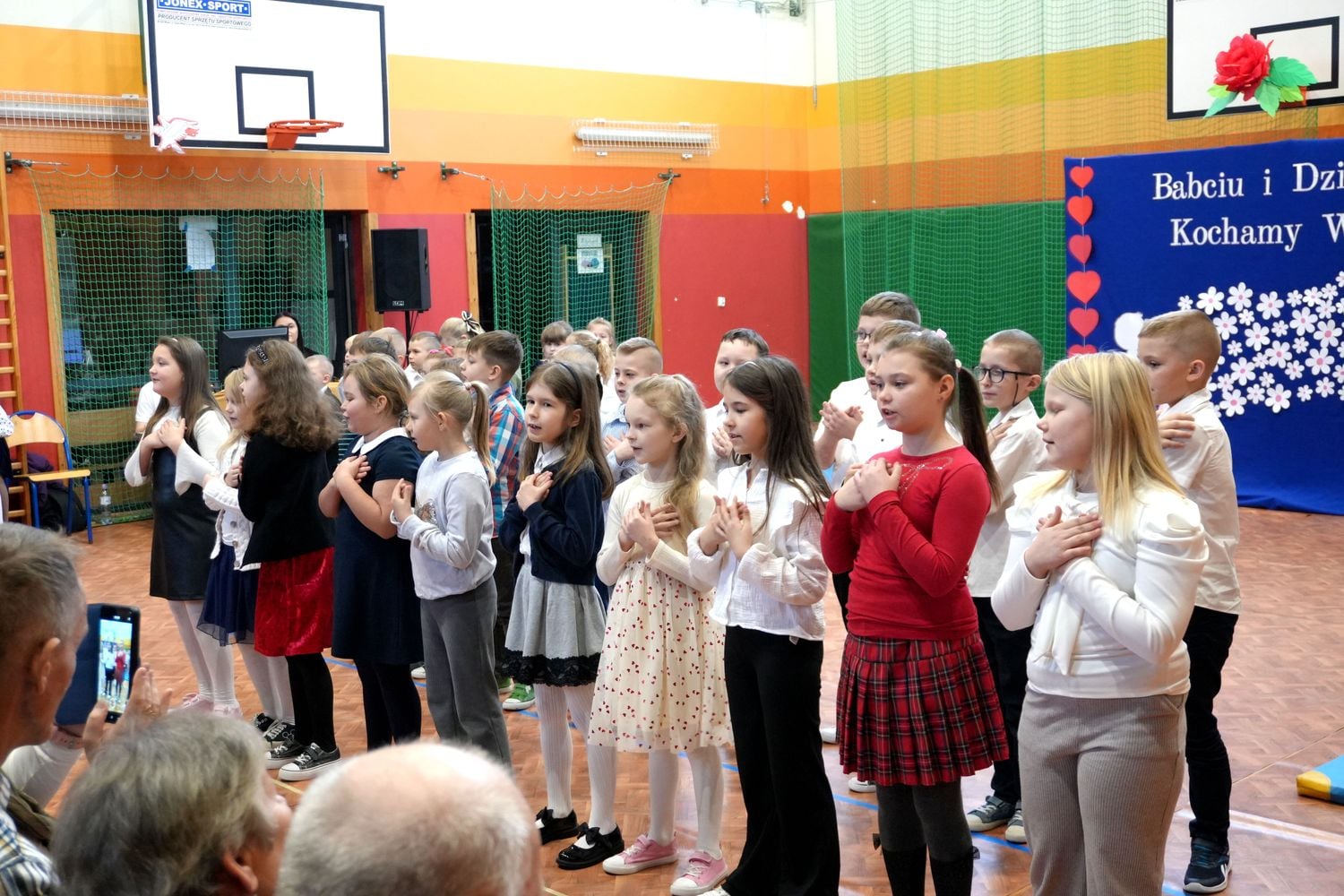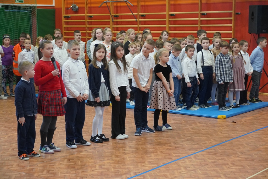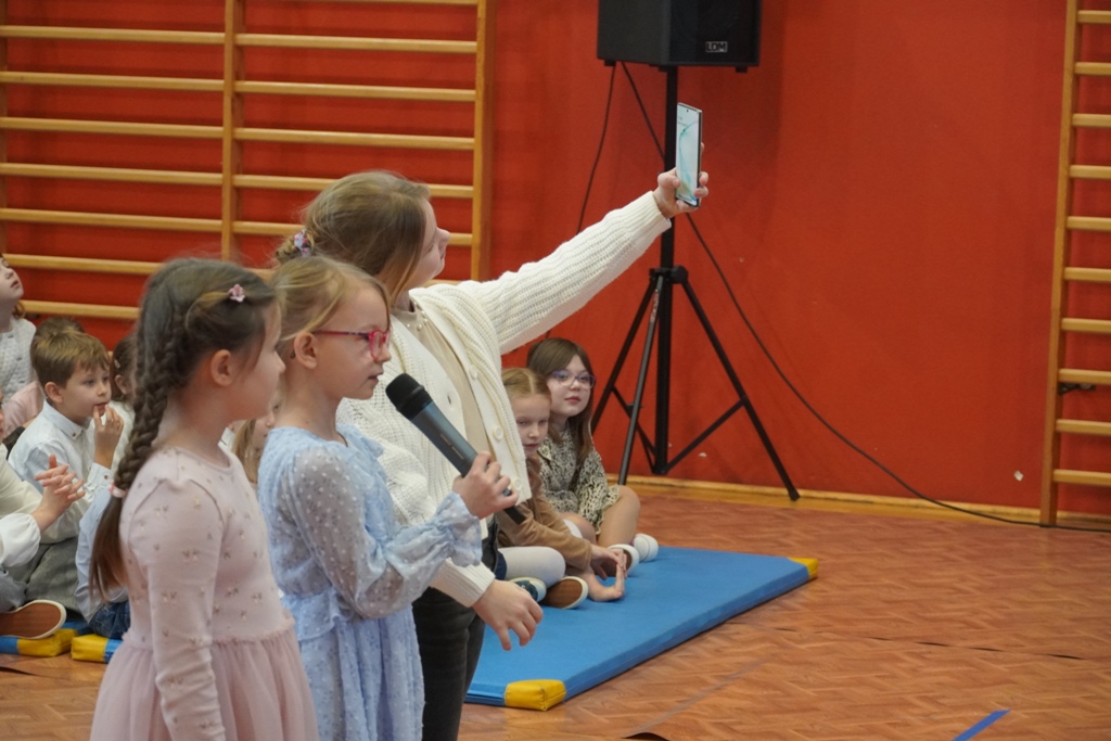 Przyjęliśmy dzisiaj w szkole wyjątkowych gości. Na zaproszenie najmłodszych uczniów, odwiedziły nas babcie i dziadkowie. Nasi uczniowie śpiewem i humorystycznymi scenkami, wyrazili wdzięczność za okazywaną im na co dzień miłość i troskę. Babcia fitness lub influencerka, a może dziadek DJ? To tylko wybrane role, w które wcielili się młodzi aktorzy. Zwieńczeniem części artystycznej było odśpiewanie sto lat dla babć i dziadków. Następnie zaprosiliśmy naszych gości do nowego skrzydła szkoły, na salę świetlicową, gdzie przygotowaliśmy słodki poczęstunek. Mamy nadzieję, że babcie i dziadkowie czuli się naszych murach dobrze!