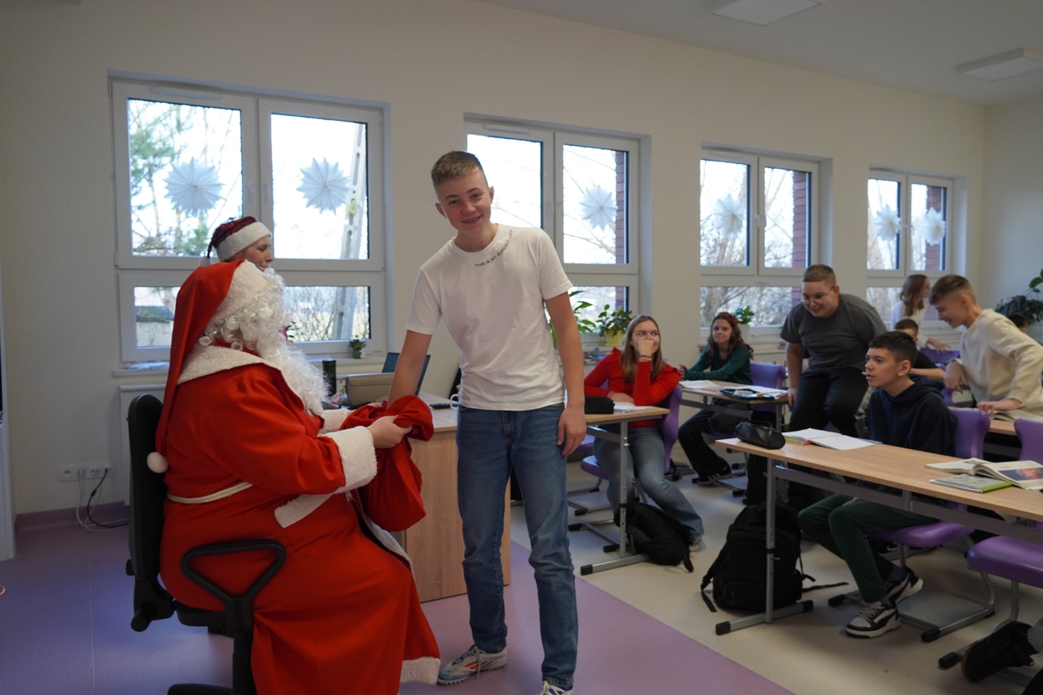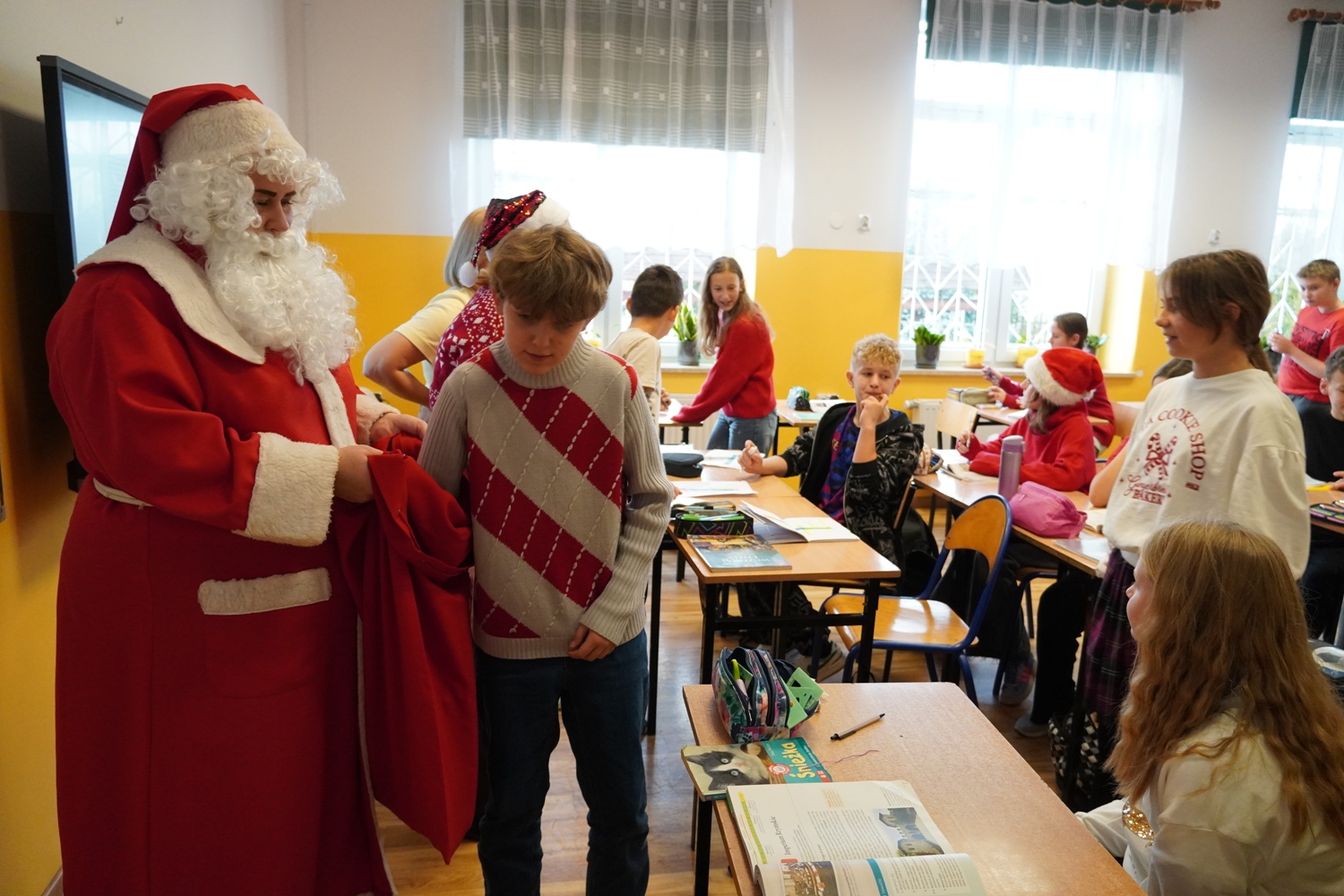 Aktualności admin Aktualności 09 grudzień 2025 Odsłon: 597 Wizyta Świętego Mikołaja W tym roku szkolnym, Mikołaj zorganizowała sobie dodatkowe ręce do pomocy. Sprawnie przekazał upominki ufundowane przez Radę Rodziców. Dziękujemy serdecznie! Poprzedni artykuł: Odlotowy niewidomy - warsztaty z p. Sebastianem Grzywaczem Poprzedni artykuł Następny artykuł: Koncert Mikołajkowy 2025 Następny artykuł