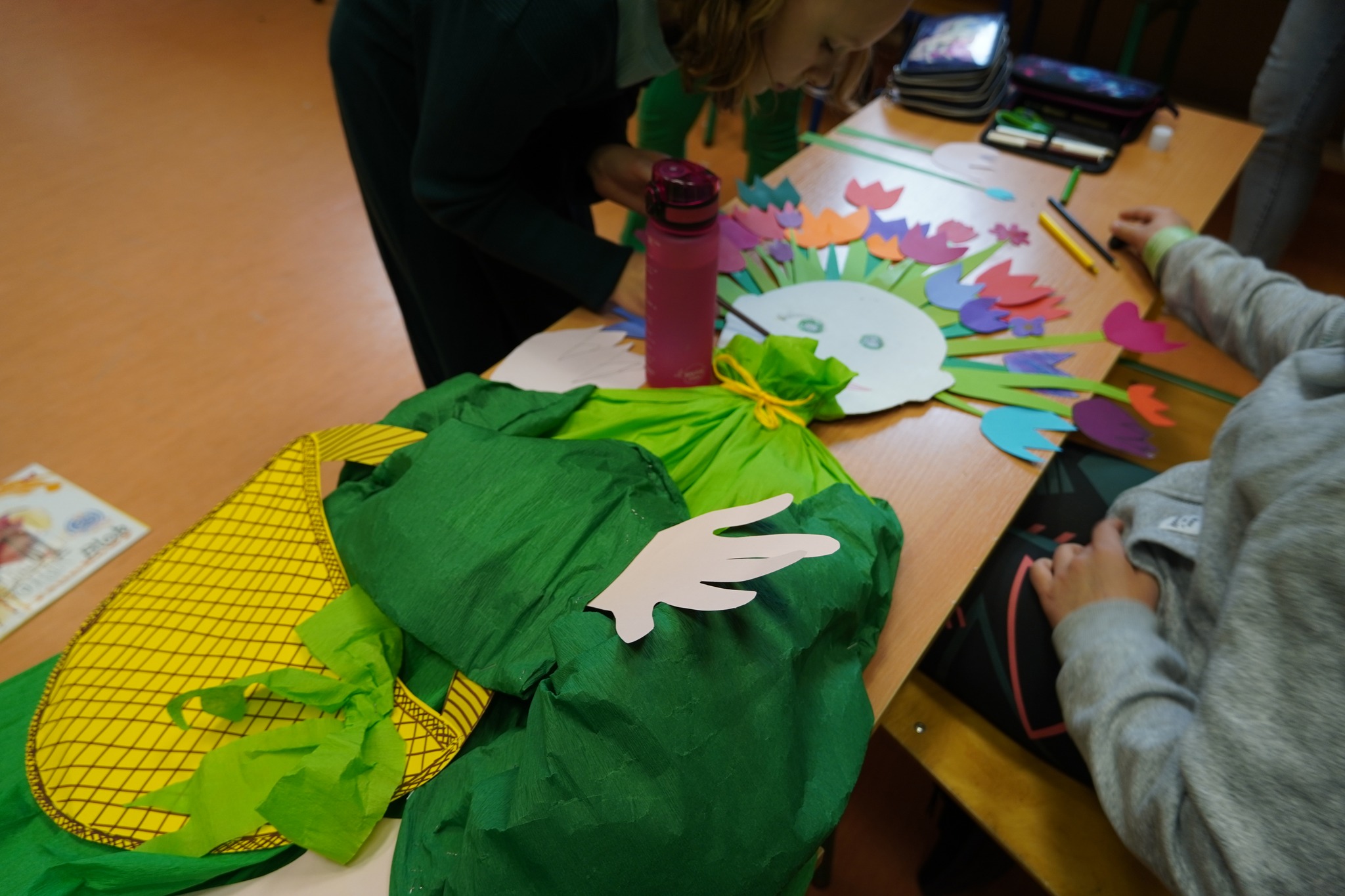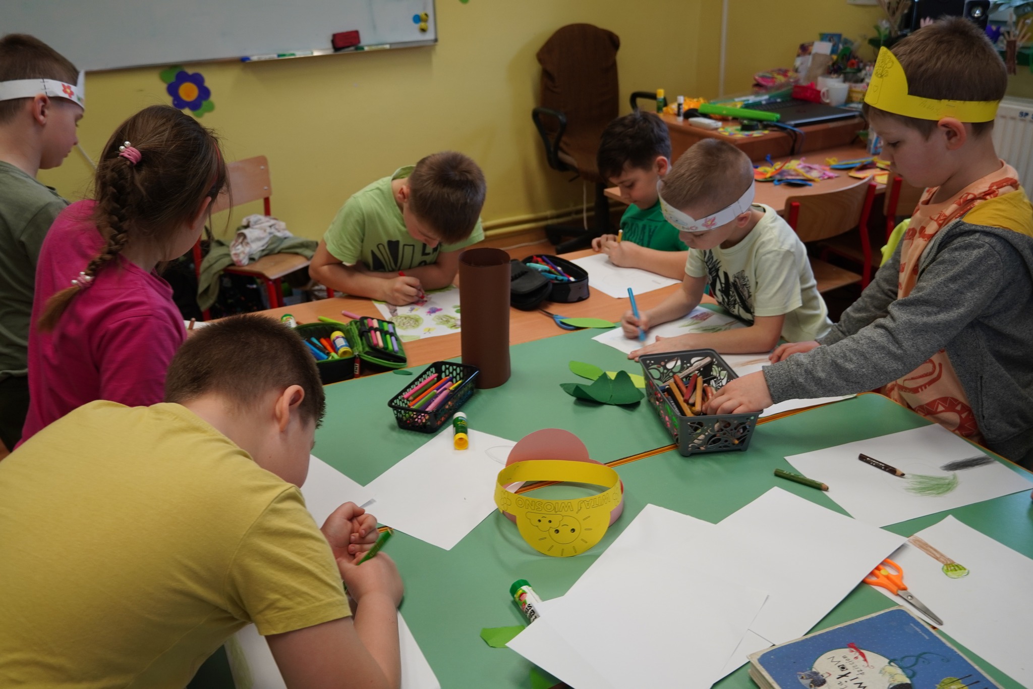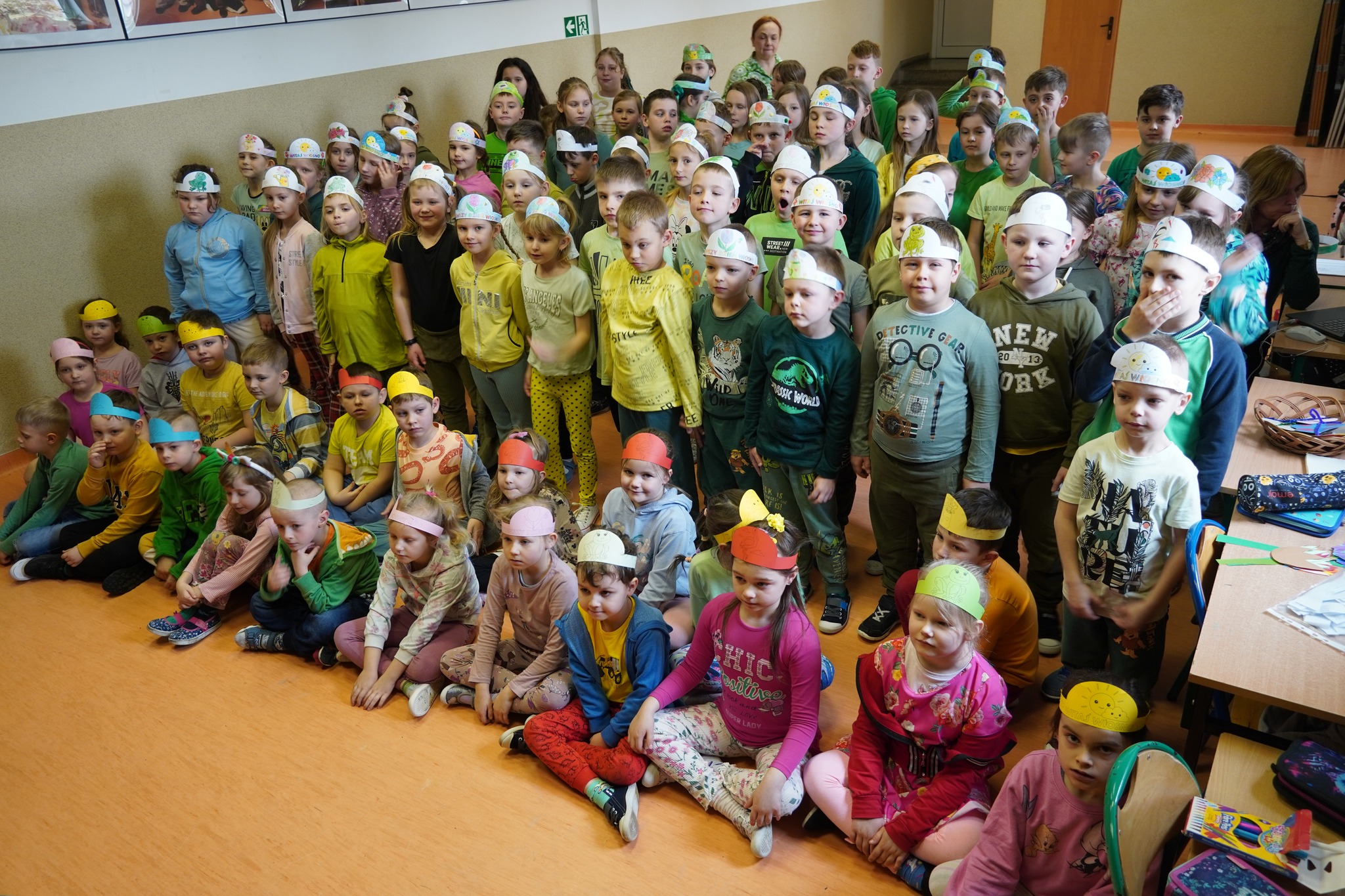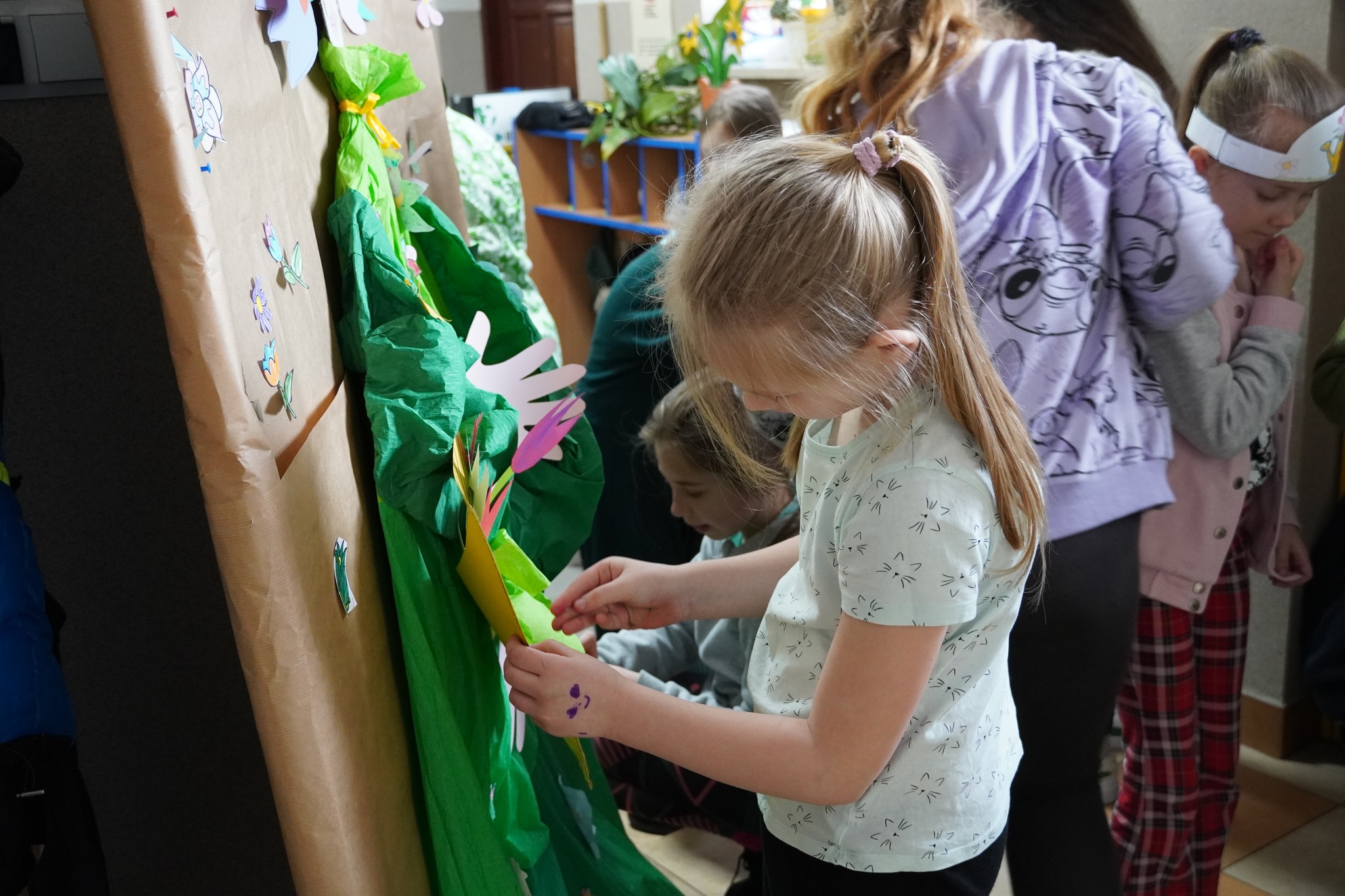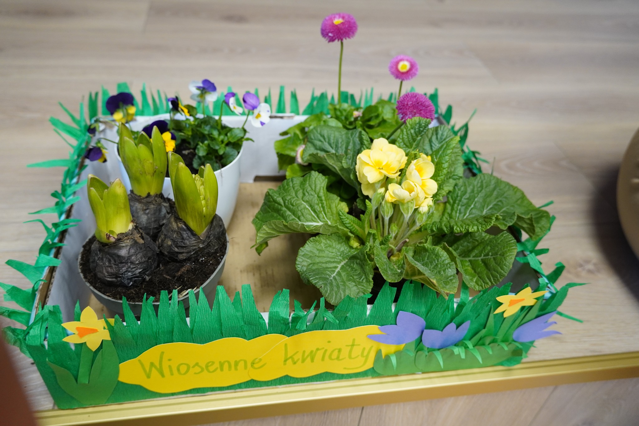 Wiosnę uczniowie witają na różne sposoby Dla najmłodszych był to bardzo produktywny dzień, pracowali w grupach, mieli do wykonania szereg wiosennych zadań, a na korytarzu zawitała wyczekiwana - Pani Wiosna.