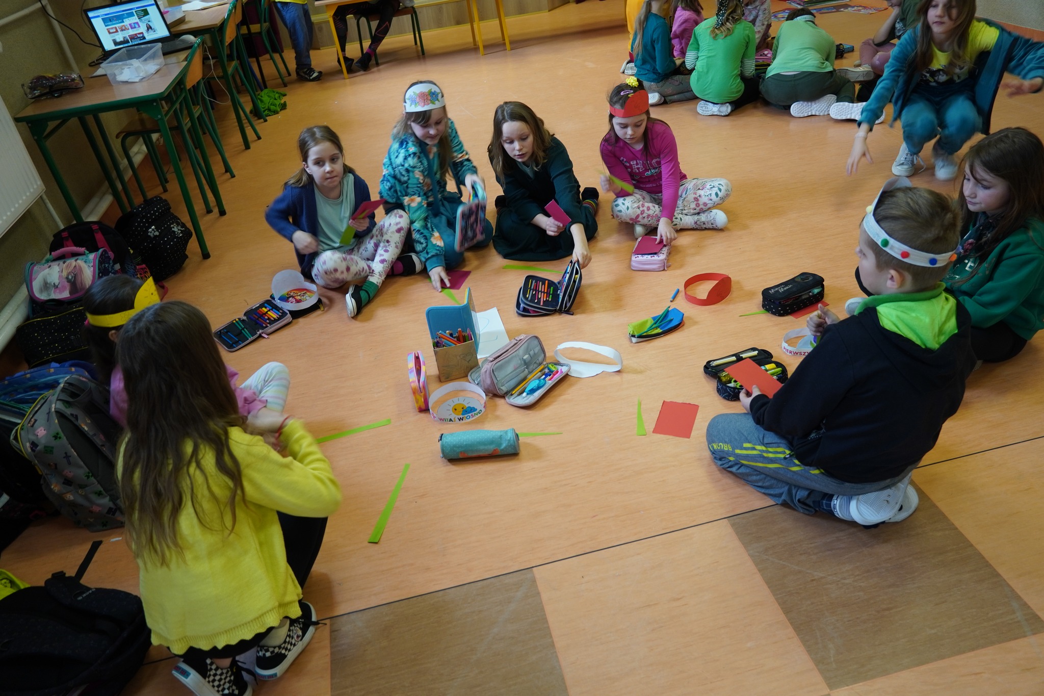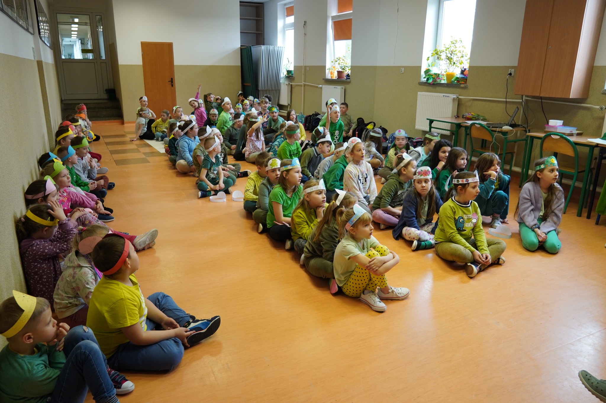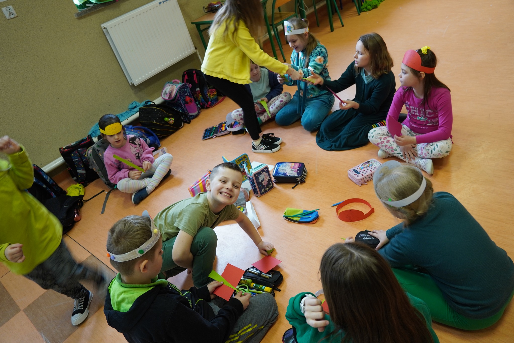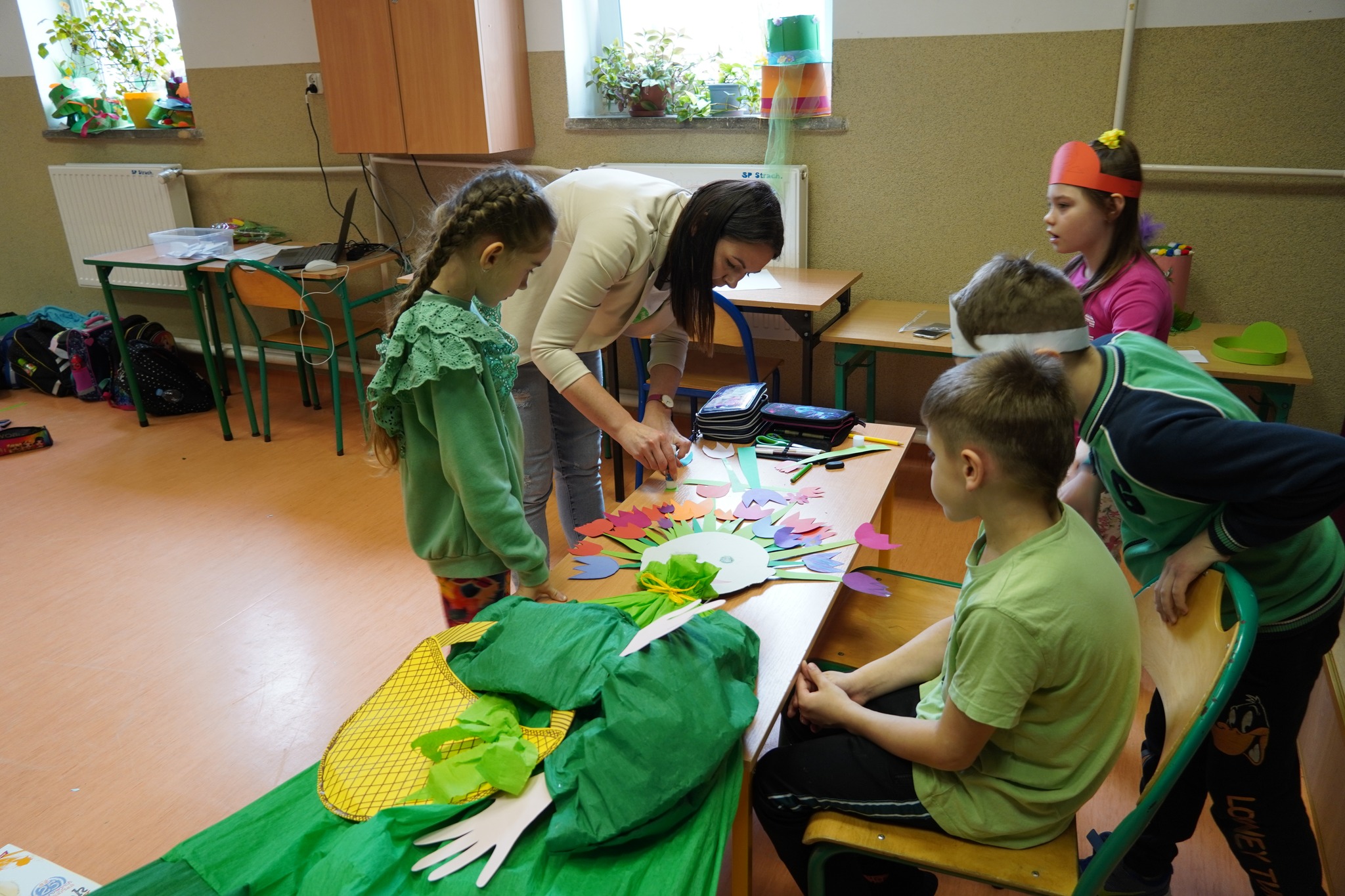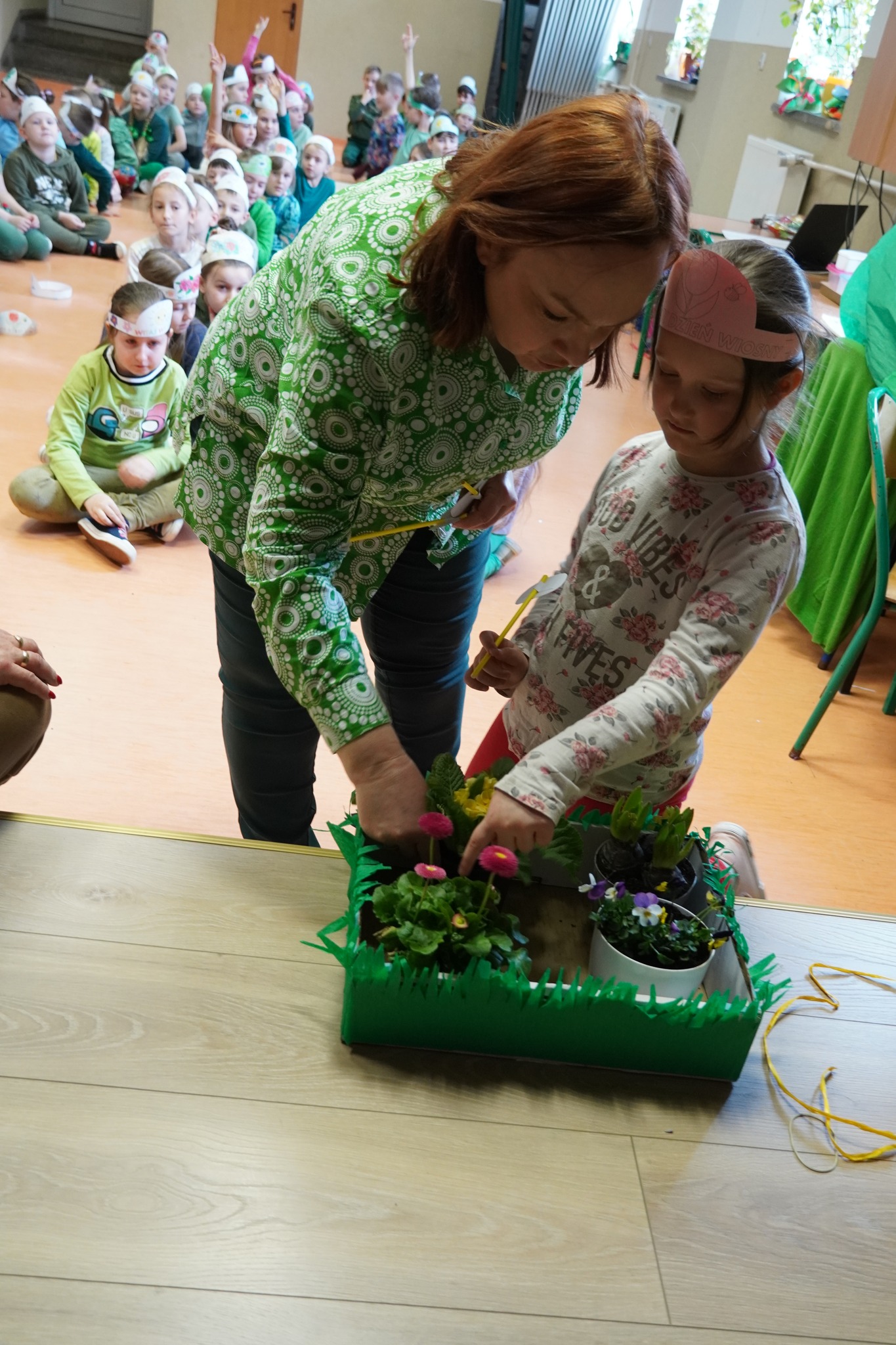 Wiosnę uczniowie witają na różne sposoby Dla najmłodszych był to bardzo produktywny dzień, pracowali w grupach, mieli do wykonania szereg wiosennych zadań, a na korytarzu zawitała wyczekiwana - Pani Wiosna.