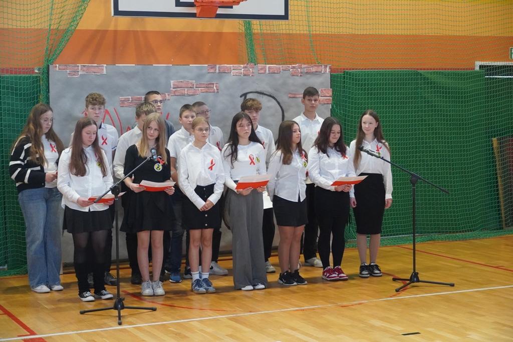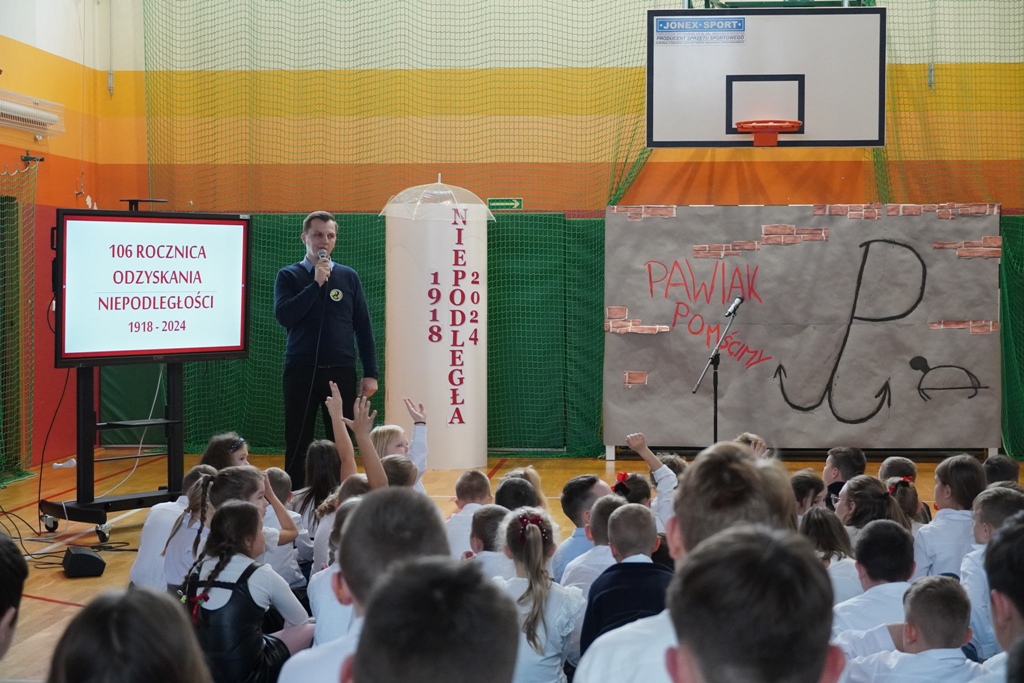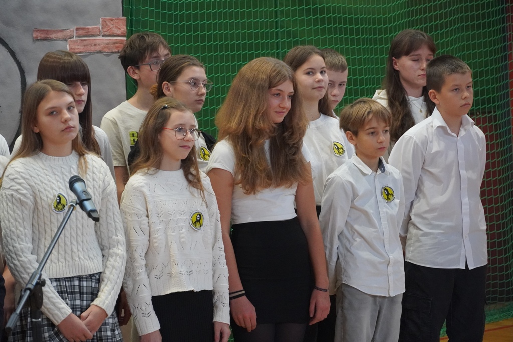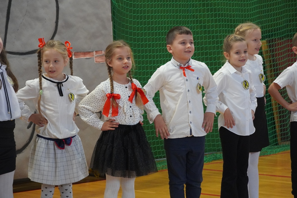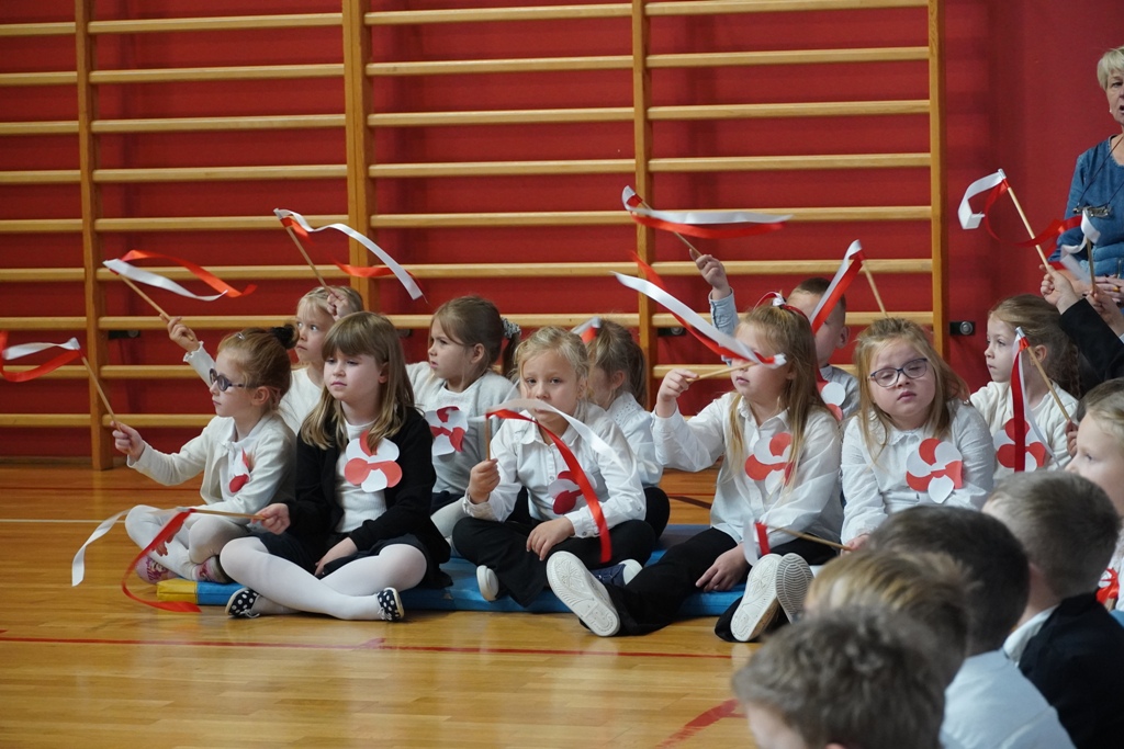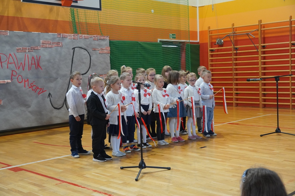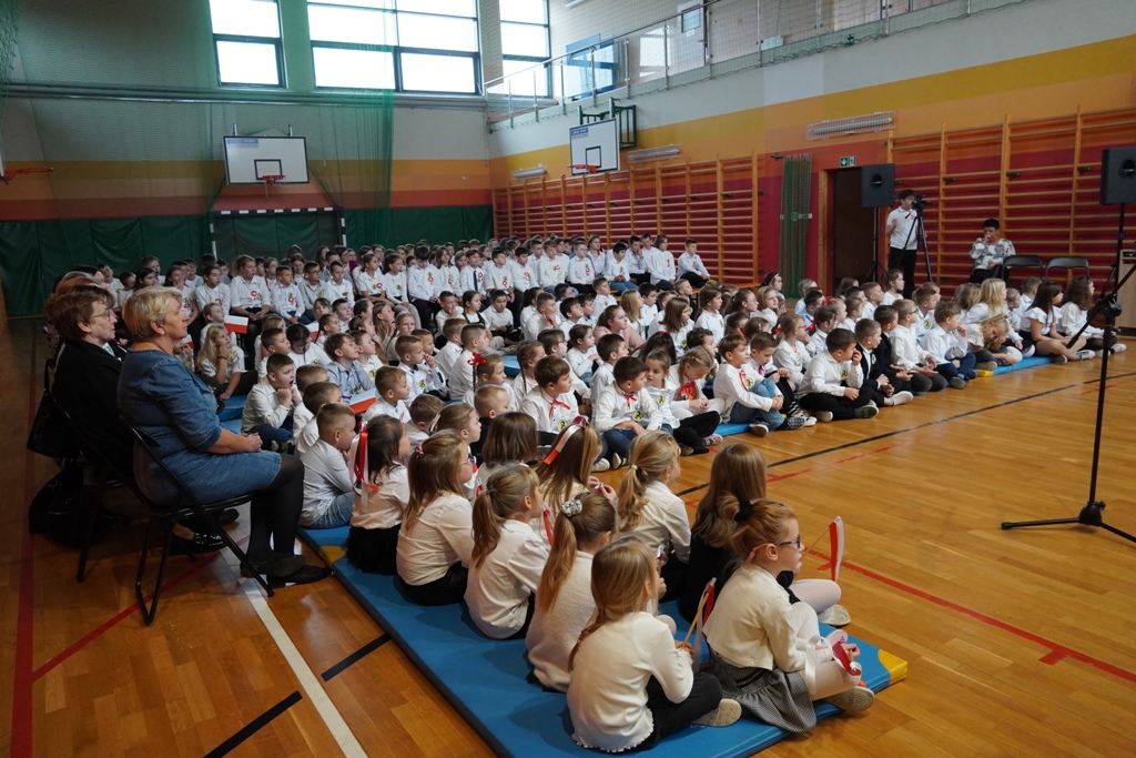 W ramach obchodów Święta Niepodległości, spotkaliśmy się w piątek na sali gimnastycznej, aby zaśpiewać pieśni patriotyczne. Każda klasa musiała przygotować jeden utwór, aby go lepiej zrozumieć, występy przeplatały się z ciekawym komentarzem p. Emili. Jest to wyjątkowe wydarzenie, którą tworzy cała społeczność szkolna, tutaj nie ma biernej publiczności. O godzinie 11:11 zaśpiewaliśmy hymn Rzeczypospolitej Polskiej, w ramach akcji Szkoła do hymnu.