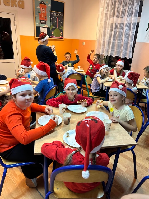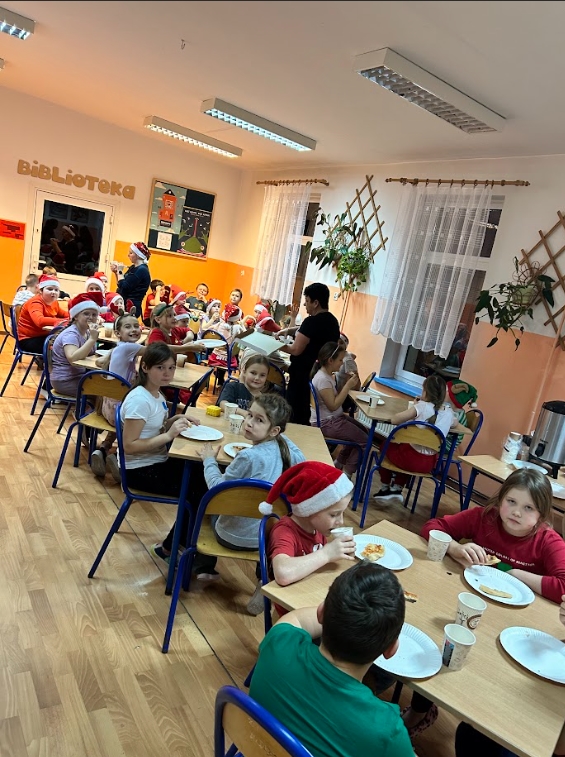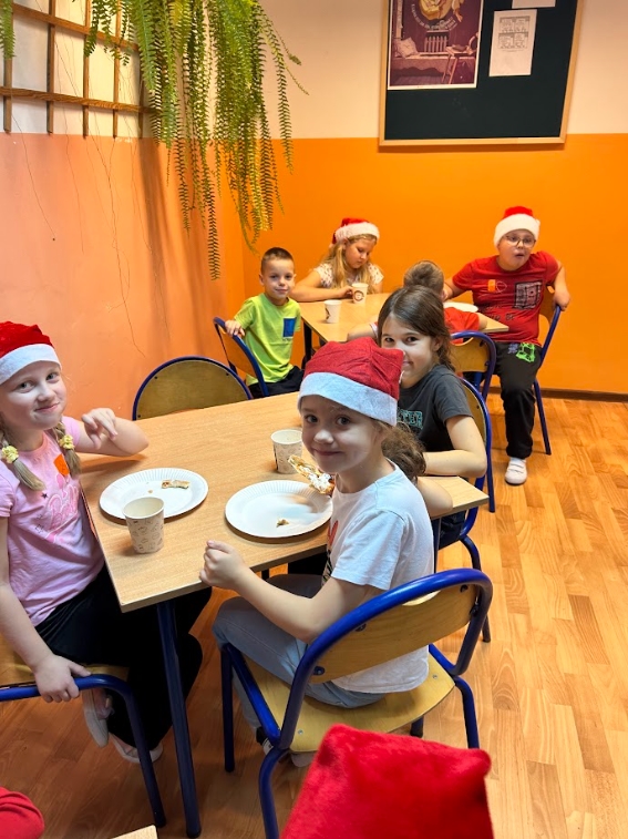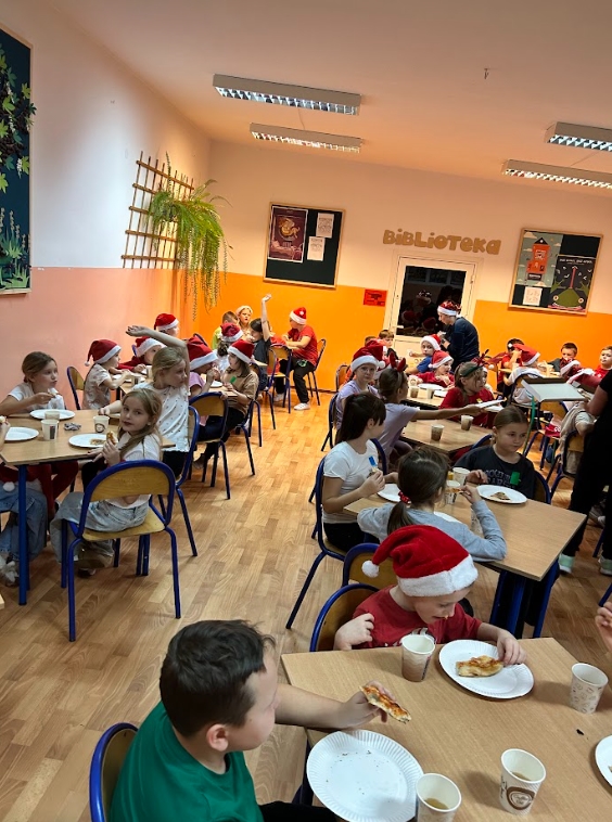 Na kolację była oczywiście pizza, a po niej odbyła się dyskoteka. Uczniowie mieli okazję obejrzeć dwa filmy: ,,Tamte święta” oraz ,,Grinch: Świąt nie będzie”. Dziękujemy za zorganizowanie tego spotkania naszym nauczycielkom: p. Kasi Pogorzelskiej, p. Basi Sajnóg, p. Joli Sawickiej- Łopacie, p. Uli Markowicz oraz p. Agnieszce Stachurskiej.