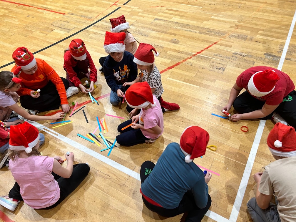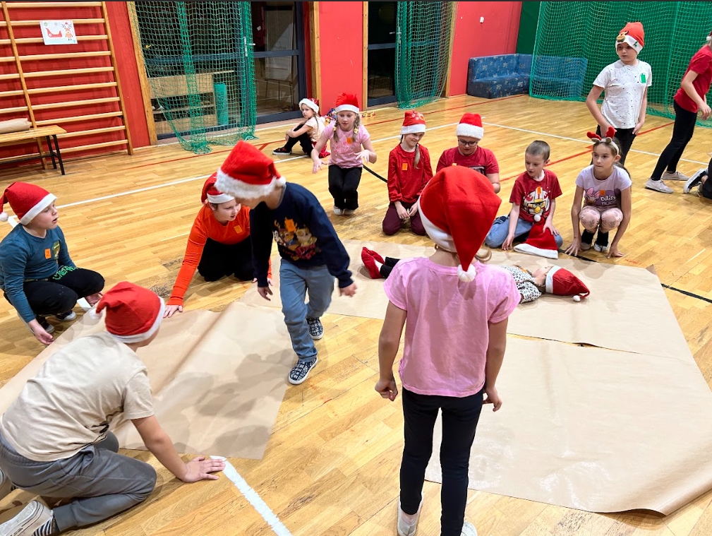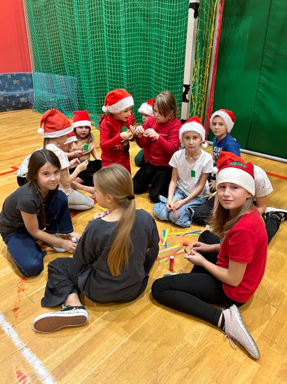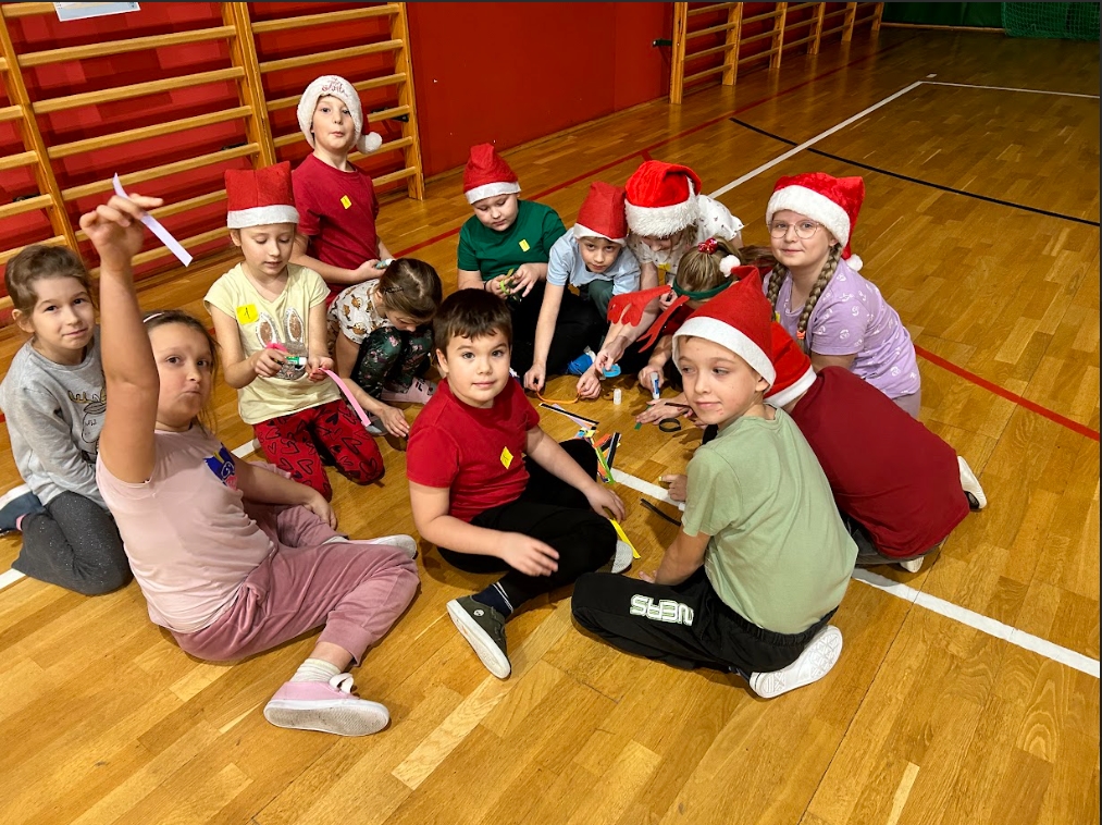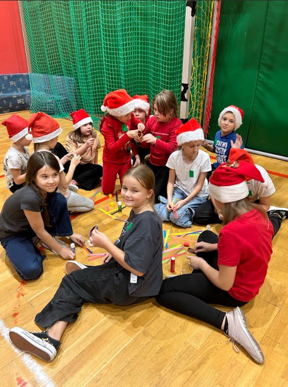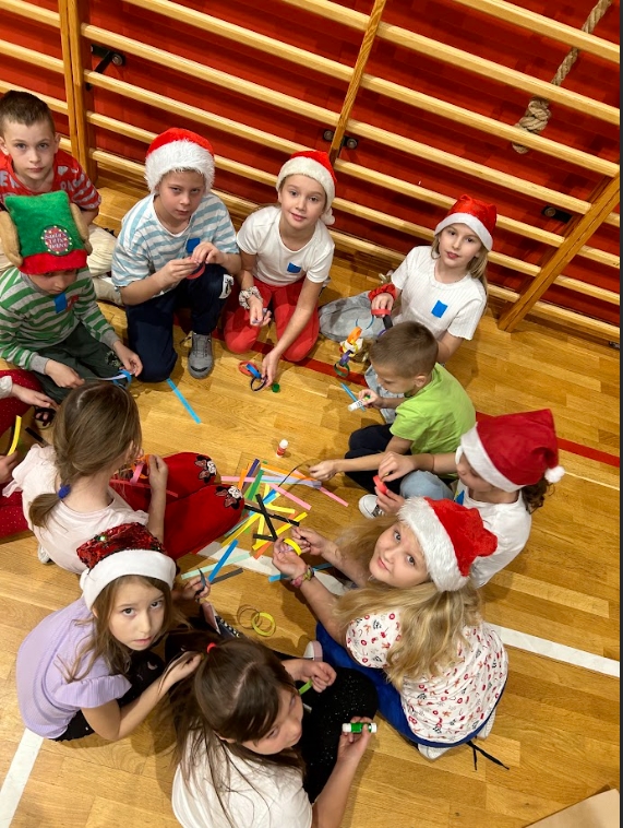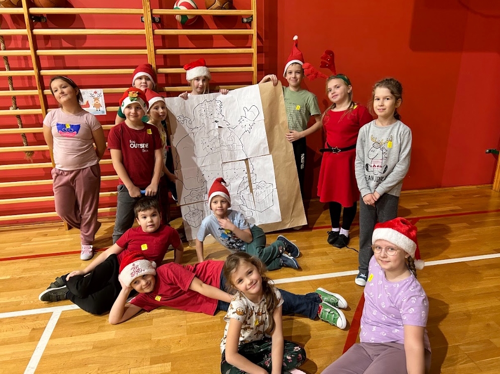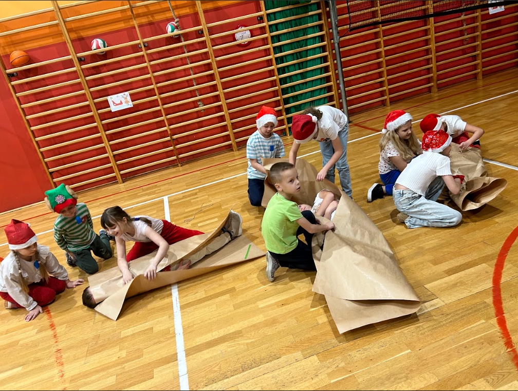 W ramach Mikołajek, uczniowie klas I-III uczestniczyli w spotkaniu integracyjnym pt. ,,Wielkie wyzwanie w szkole nocowanie”. Zaczęli od zabaw integracyjnych. W grupach sprawdzili swoją wiedzę na temat zwyczajów świątecznych i Świętego Mikołaja, zmierzyli się z wykonaniem zadań: przygotowania najdłuższego łańcucha oraz pakowania prezentu. Jednak największą atrakcją okazały się podchody z latarkami w ciemności.