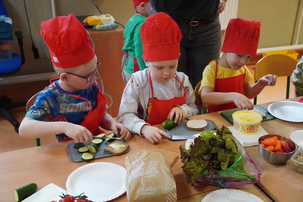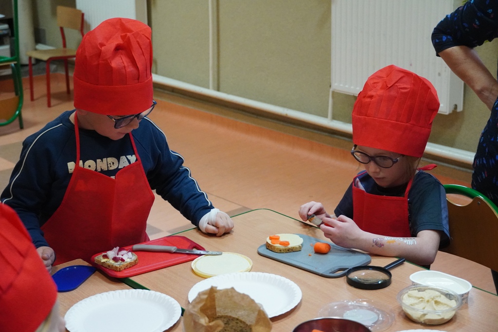 Nasi najmłodsi uczniowie, na zaproszenie rodziców, wzięli udział w warsztatach kulinarnych. Dowiedzieli się dlaczego śniadanie jest takie ważne i jakie składniki powinny je tworzyć. Następnie, przyszedł czas na praktykę!