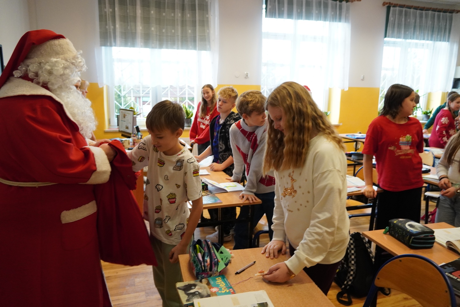 Aktualności admin Aktualności 09 grudzień 2025 Odsłon: 598 Wizyta Świętego Mikołaja W tym roku szkolnym, Mikołaj zorganizowała sobie dodatkowe ręce do pomocy. Sprawnie przekazał upominki ufundowane przez Radę Rodziców. Dziękujemy serdecznie! Poprzedni artykuł: Odlotowy niewidomy - warsztaty z p. Sebastianem Grzywaczem Poprzedni artykuł Następny artykuł: Koncert Mikołajkowy 2025 Następny artykuł